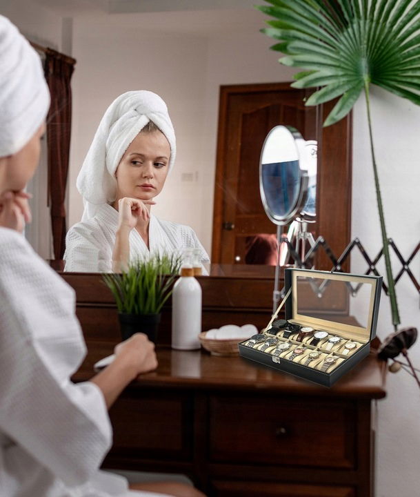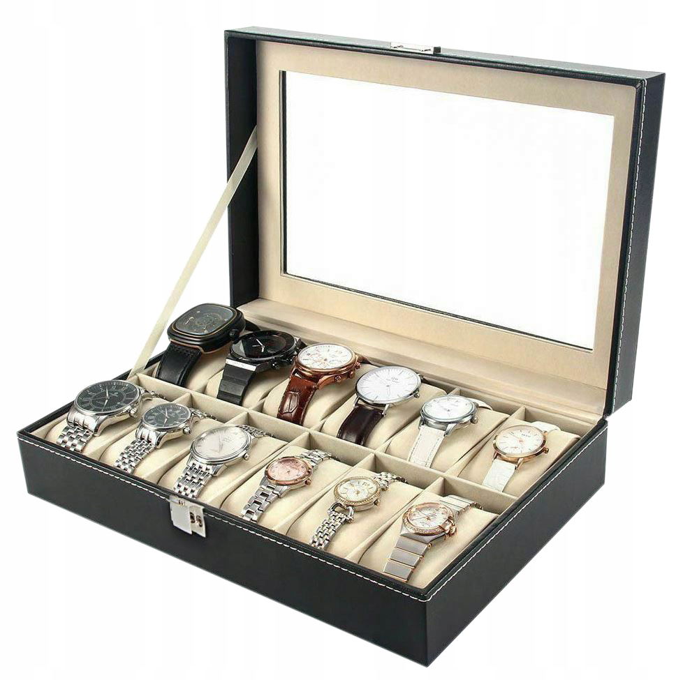 ETUI BOX SZKATUŁKA NA ZEGARKI 12 SZT DUŻA POJEMNA OKIENKO ORGANIZER PUDEŁKO