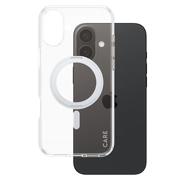 Etui CARE by PanzerGlass Feature Kickstand do MagSafe do iPhone 16 Plus, srebrne