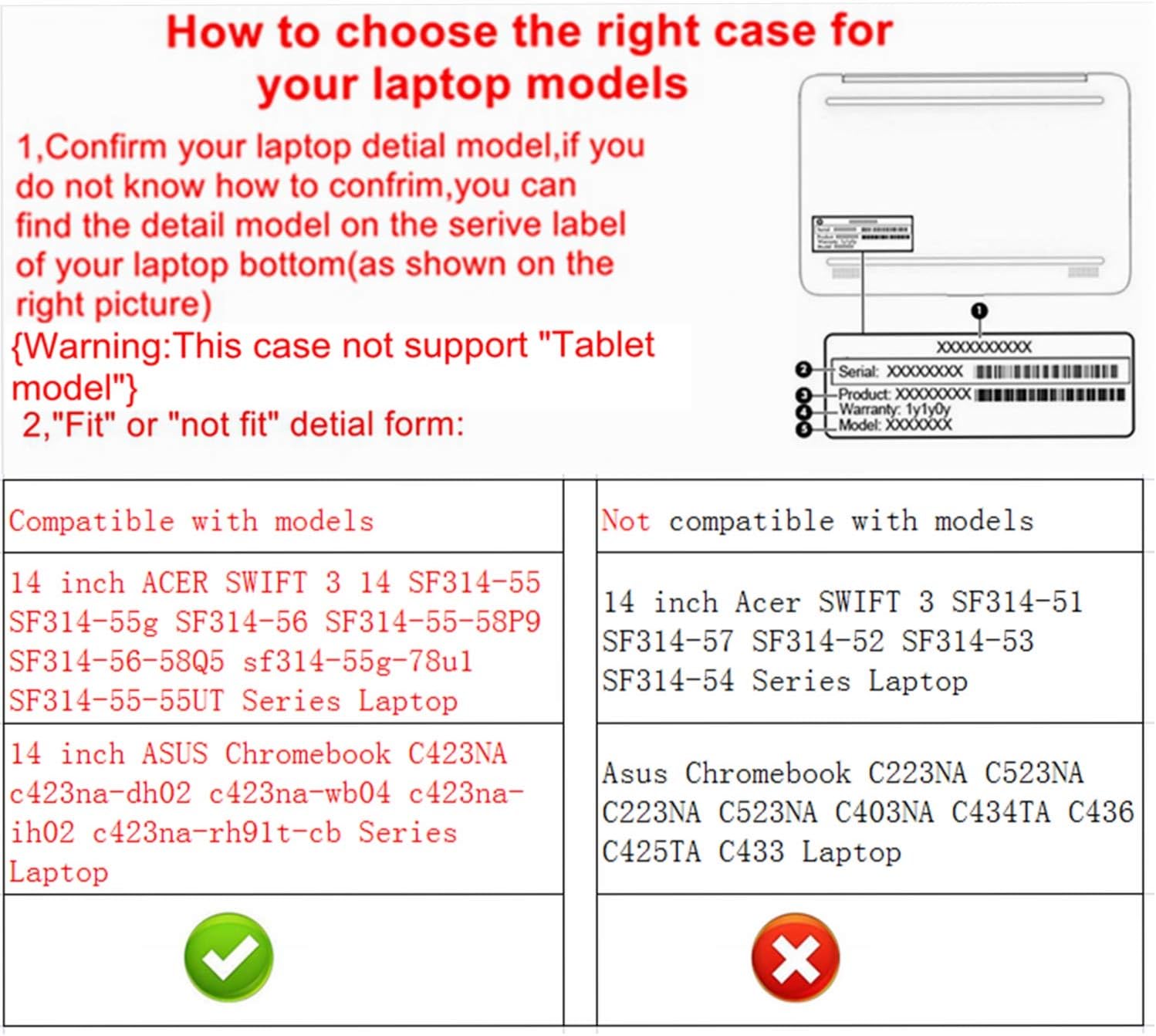 Etui pasuje do modelu: ASUS Chromebook C423NA // Acer SWIFT 3 14 SF314-55 SF314-55g SF314-56 // Acer Chromebook Spin 514 CP514-1H (nie pasuje do SWIFT 3 SF314-51 SF314-57 SF314-52 SF314-53)