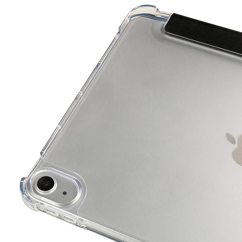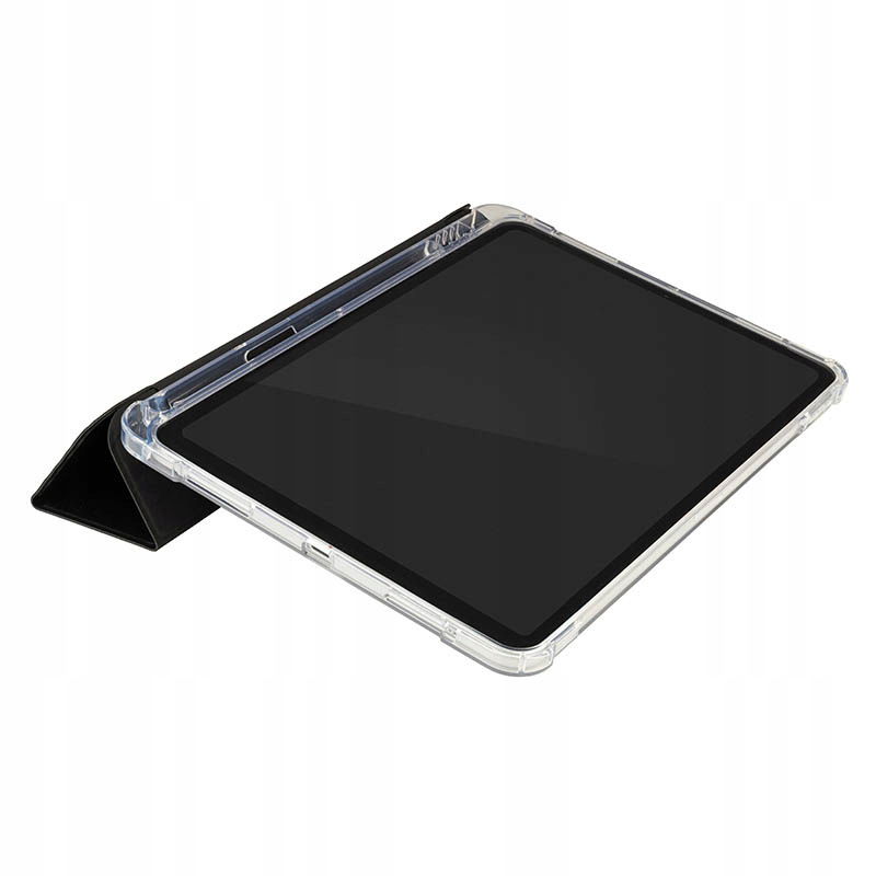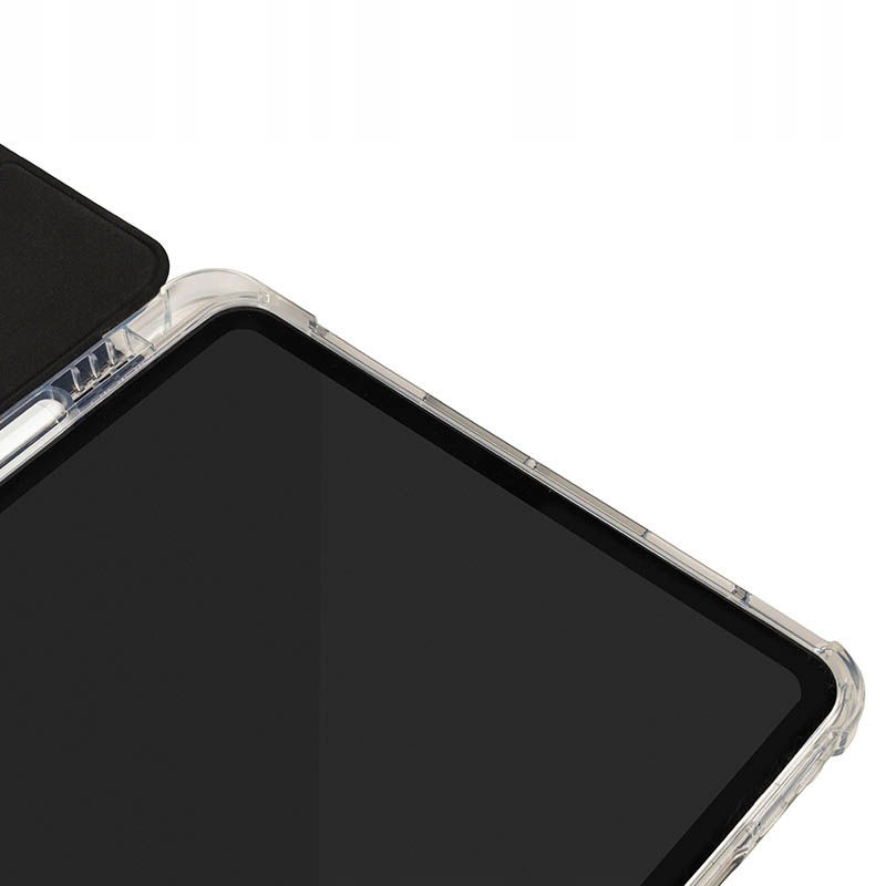 Antywstrząsowa tylna powłoka wykonana jest z przezroczystego, podwójnie wtryskiwanego poliwęglanu, który dodatkowo posiada ramkę z TPU dla łatwiejszego montażu i demontażu iPada.