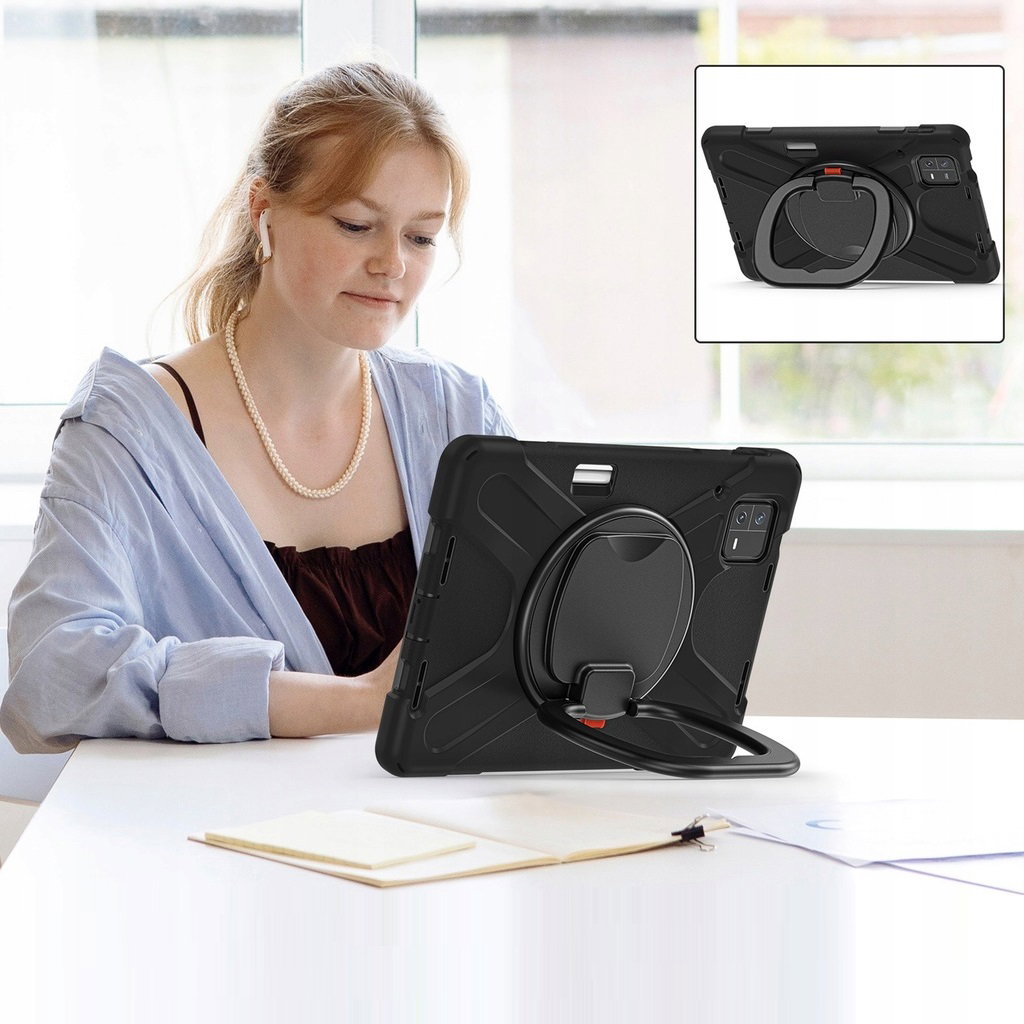 Opis Produktu: Zabezpiecz swojego iPada Air 5/4 lub iPada Pro 11" dzięki naszemu czarnemu etui, które oferuje pełną ochronę i funkcjonalność. Precyzyjne wycięcia umożliwiają łatwy dostęp do wszystkich portów, czujników, głośników i kamer, co zapewnia pełną funkcjonalność urządzenia. Wytrzymała obudowa tabletu zapewnia trzy warstwy ochrony przed upadkiem, łącząc twardą obudowę PC z miękką silikonową osłoną, co chroni przed przypadkowymi upadkami, uderzeniami i wstrząsami. Dodatkowo, etui posiada stojak obrotowy o 360 stopni z tyłu pokrywy, umożliwiający ustawienie tabletu w pozycji poziomej lub pionowej.