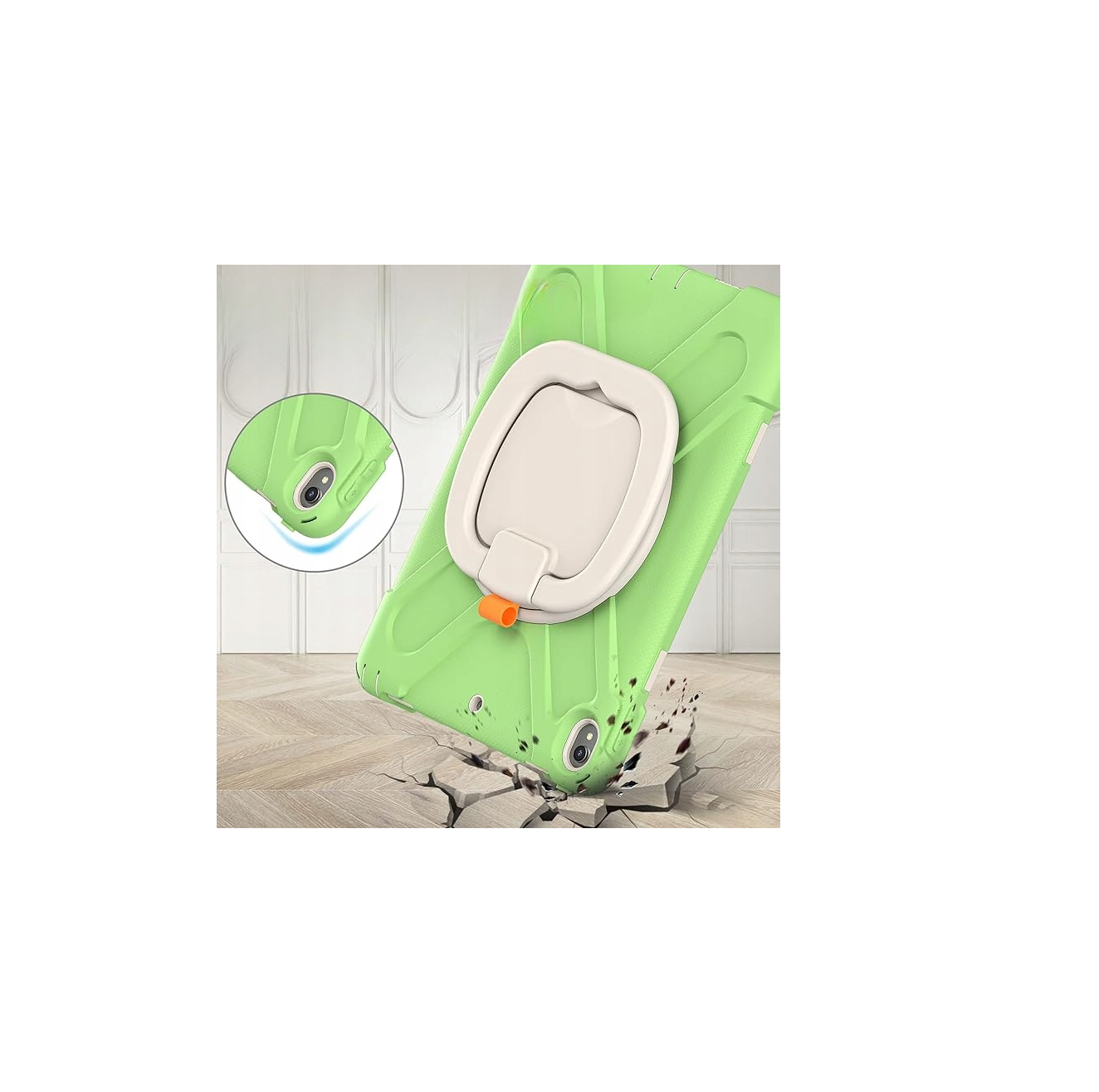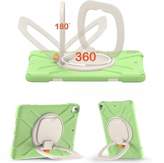 Etui jest wyposażone w obrotowy uchwyt 360°, który może służyć jako uchwyt do łatwego zawieszenia iPada w kuchni, łazience, sypialni, a także jako stabilny stojak na różnych powierzchniach, umożliwiając wygodne korzystanie z tabletu. Dzięki solidnej ochronie całego ciała, etui zapobiega zadrapaniom, wstrząsom i pyłowi, zwiększając amortyzację i ochronę przed upadkiem. Przyciski i pokrywa drzwiczek zapobiegają dostawaniu się kurzu, jednak osłona ekranu nie jest dołączona do zestawu.