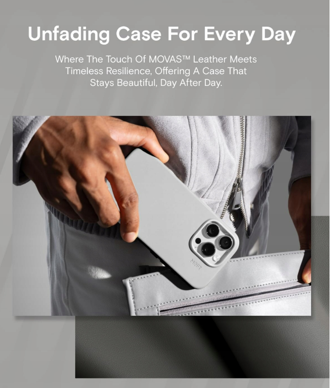 [Pierwszorzędna wegańska skóra MOVAS]: Etui na telefon komórkowy Snap jest wykonane z wegańskiej skóry MOVAS, rewolucyjnego materiału MOFT. Łączy w sobie funkcjonalność, zrównoważony rozwój i komfort, jest nietoksyczna i przyjazna dla środowiska. Pozostaje ona nieskazitelna nawet po 2000 testach drapania i 10 000 cyklach zginania. Etui zostało przetestowane, aby wytrzymać fizyczne zarysowania podczas codziennego użytkowania. Można ją bezpiecznie nosić w torbie razem z przedmiotami codziennego użytku, takimi jak klucze lub monety.