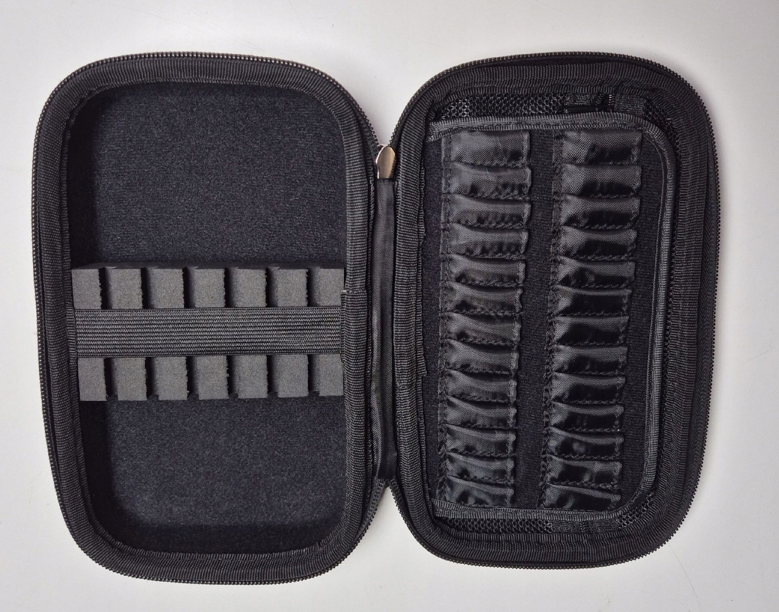 Etui pomieści kompletny zestaw lotek, piórka, shafty, końcówki, narzędzia do darta i drobne akcesoria. Dzięki usztywnionej konstrukcji świetnie sprawdza się w torbie sportowej, plecaku czy w podróży.