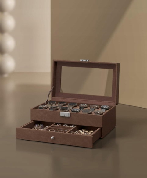 - ✴️[Stylizuj swoje kolekcje zegarków] Wyposażony w rustykalne lite drewno o bogatym usłojeniu i dużą, przezroczystą szklaną pokrywę, ten uchwyt na zegarek nie tylko spełni Twoje potrzeby w zakresie przechowywania, ale także podkreśli Twoją kolekcję zegarków i ozdobi Twoją przestrzeń