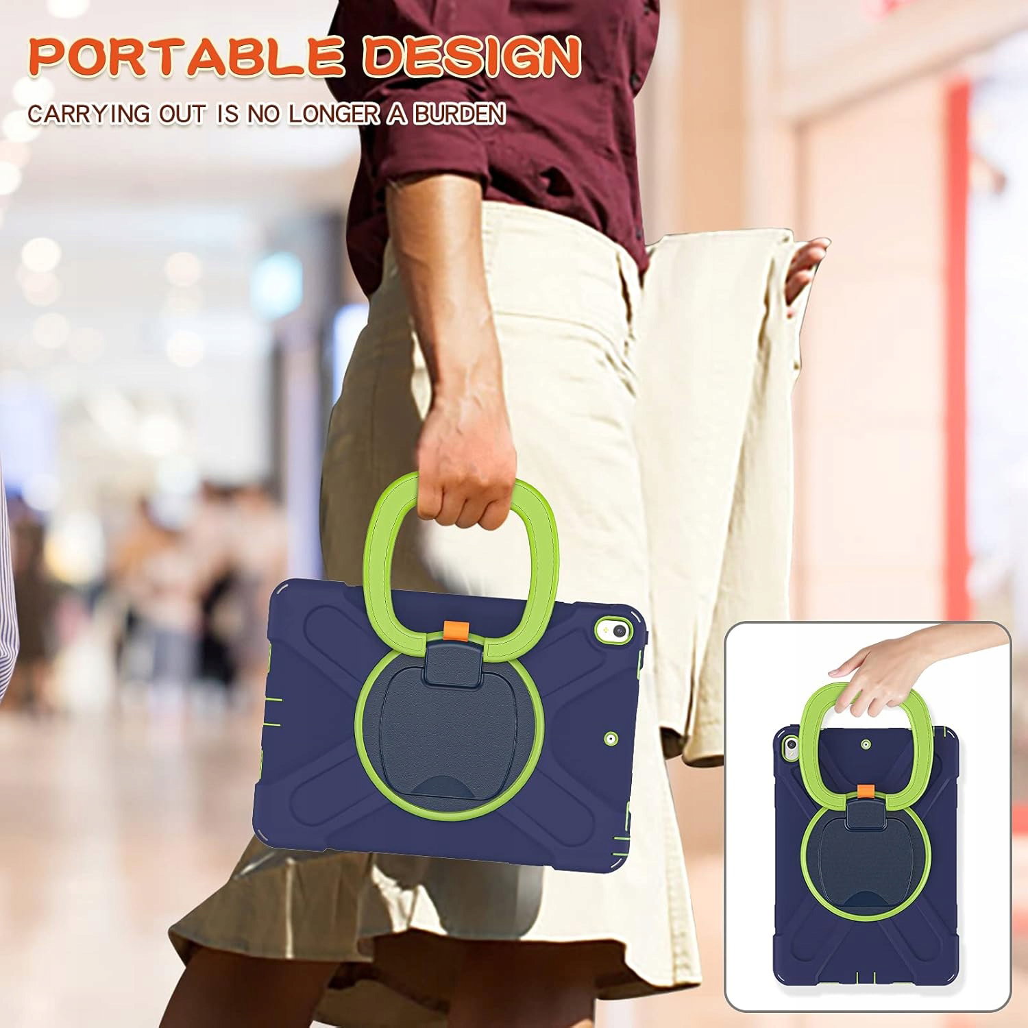 - Obrotowy Uchwyt i Stojak (360°): Z tyłu obudowy znajduje się wielofunkcyjny, obrotowy uchwyt, który pozwala na pewne trzymanie tabletu dłonią (idealne podczas prezentacji) lub ustawienie go jako stabilnej podstawki pod dowolnym kątem.