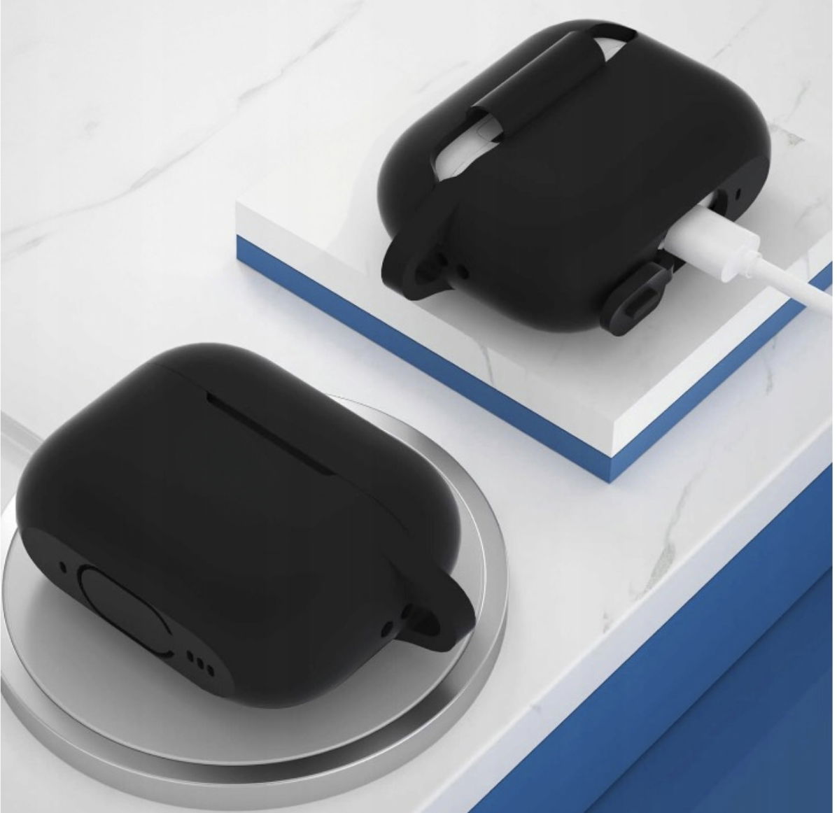 Elastyczny i trwały silikon chroni Twoje AirPods Pro 1/2 przed uszkodzeniami mechanicznymi. To również przyjemne w dotyku rozwiązanie, które doskonale leży w dłoni.