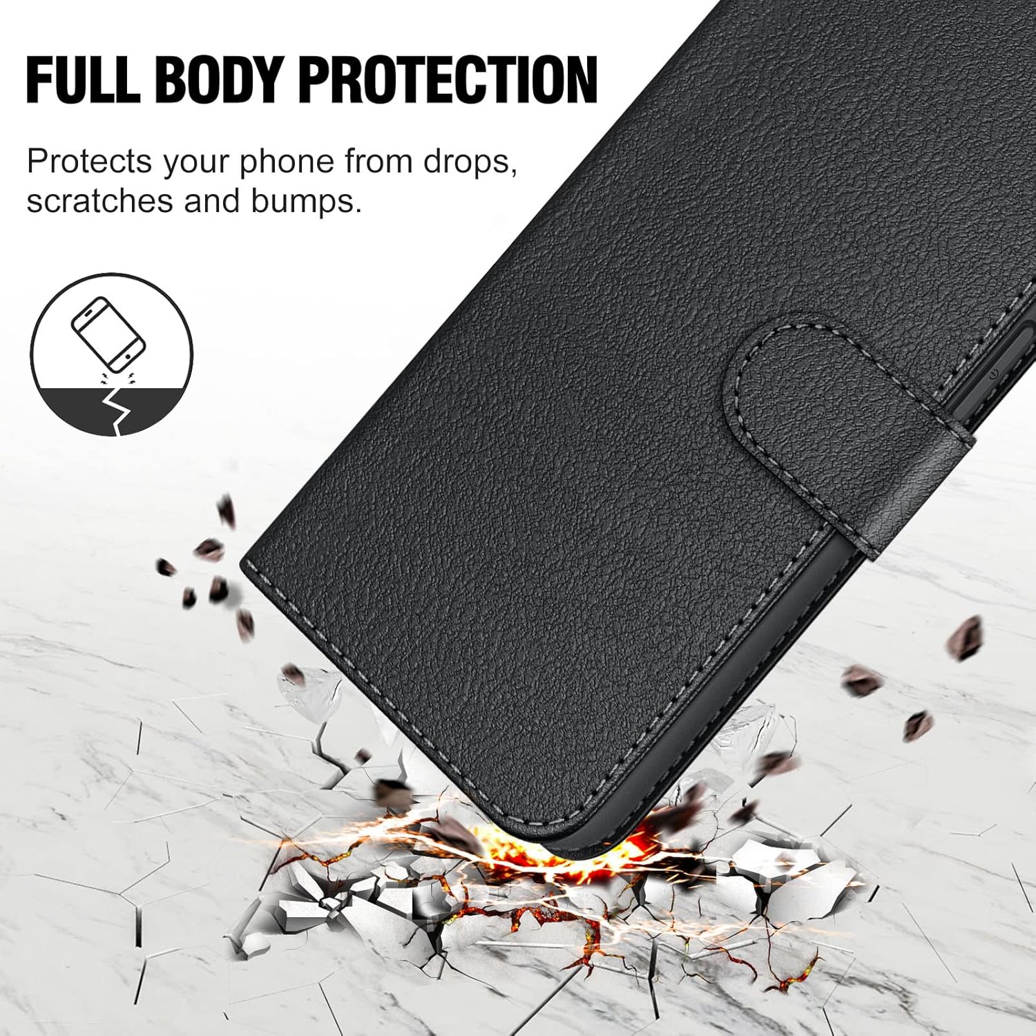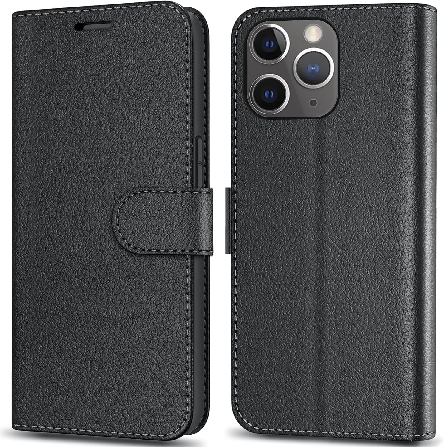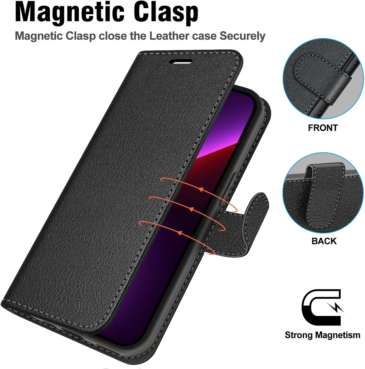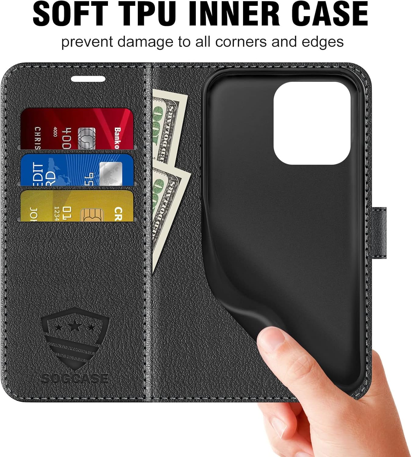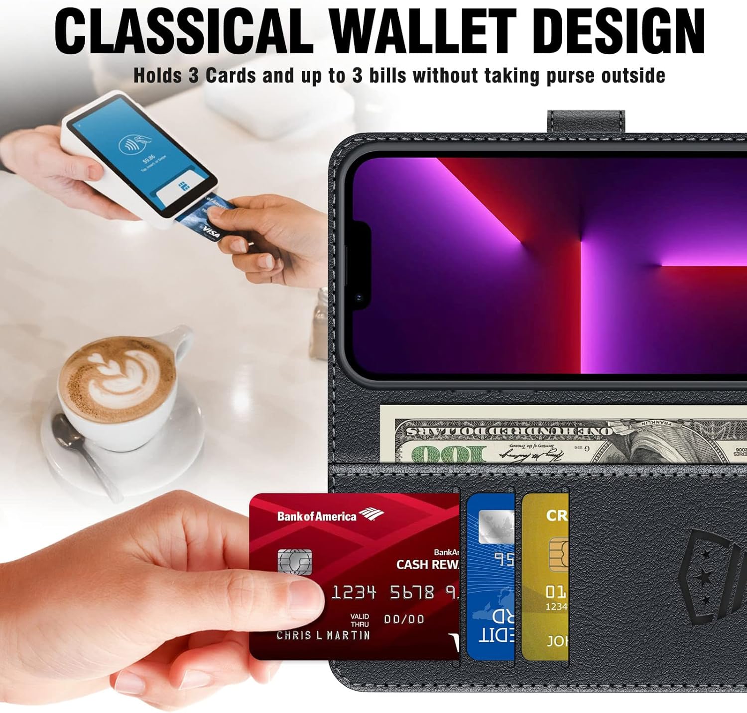 ETUI Z KLAPKĄ APPLE IPHONE 13 PRO CZARNE Z EKOSKÓRY +MIEJSCE NA KARTY A2483