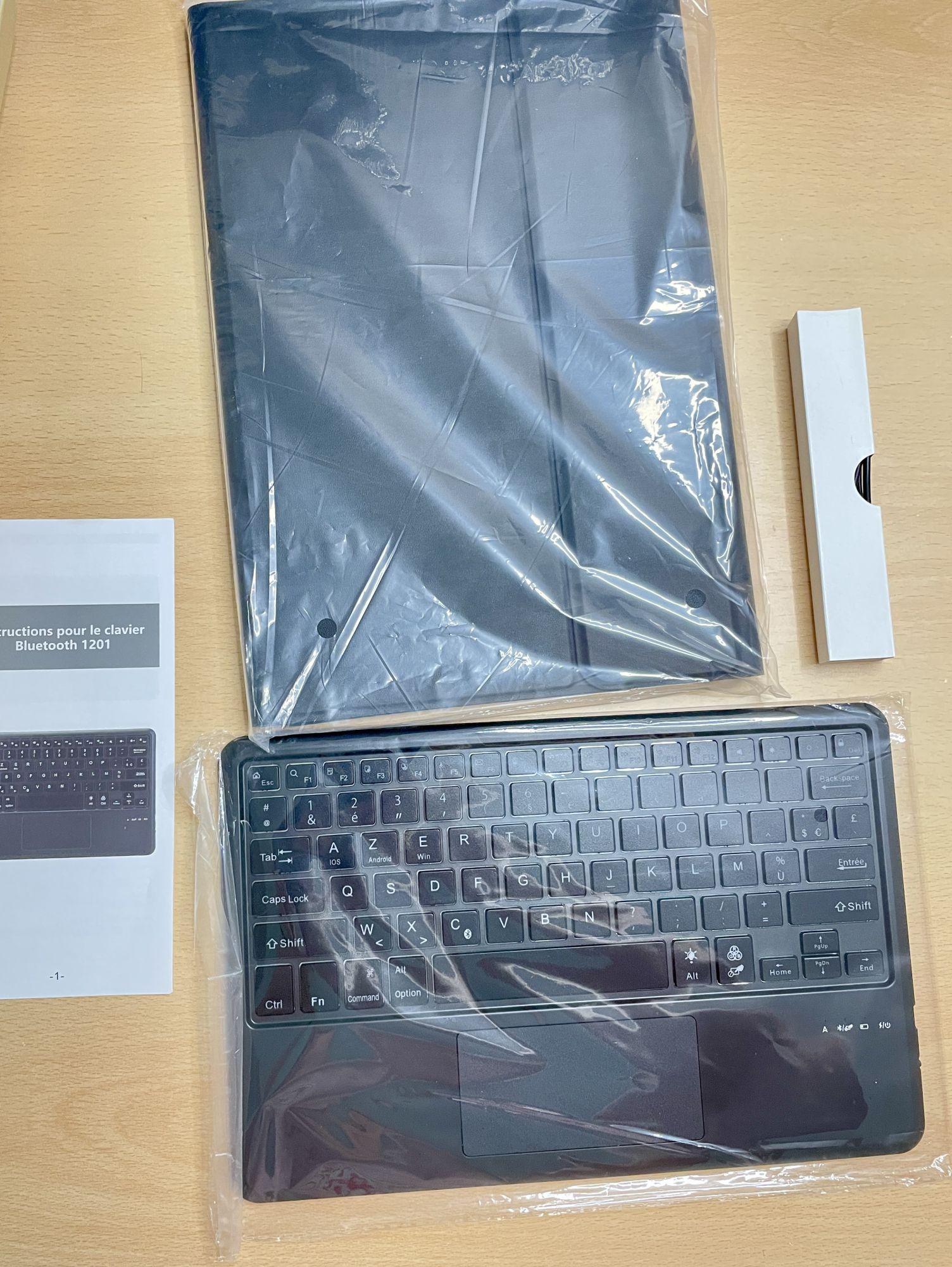 - Kompletny: etui, klawiatura z touchpadem, kabelek USB-C, instrukcja (język francuski, polskie tłumaczenie na życzenie jako pdf), pudełko
