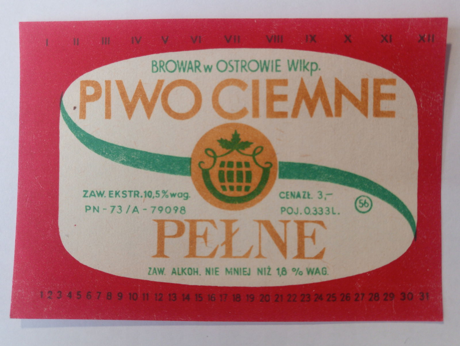 Etykieta Browar Ostrów Wlkp. Piwo Ciemne Pełne