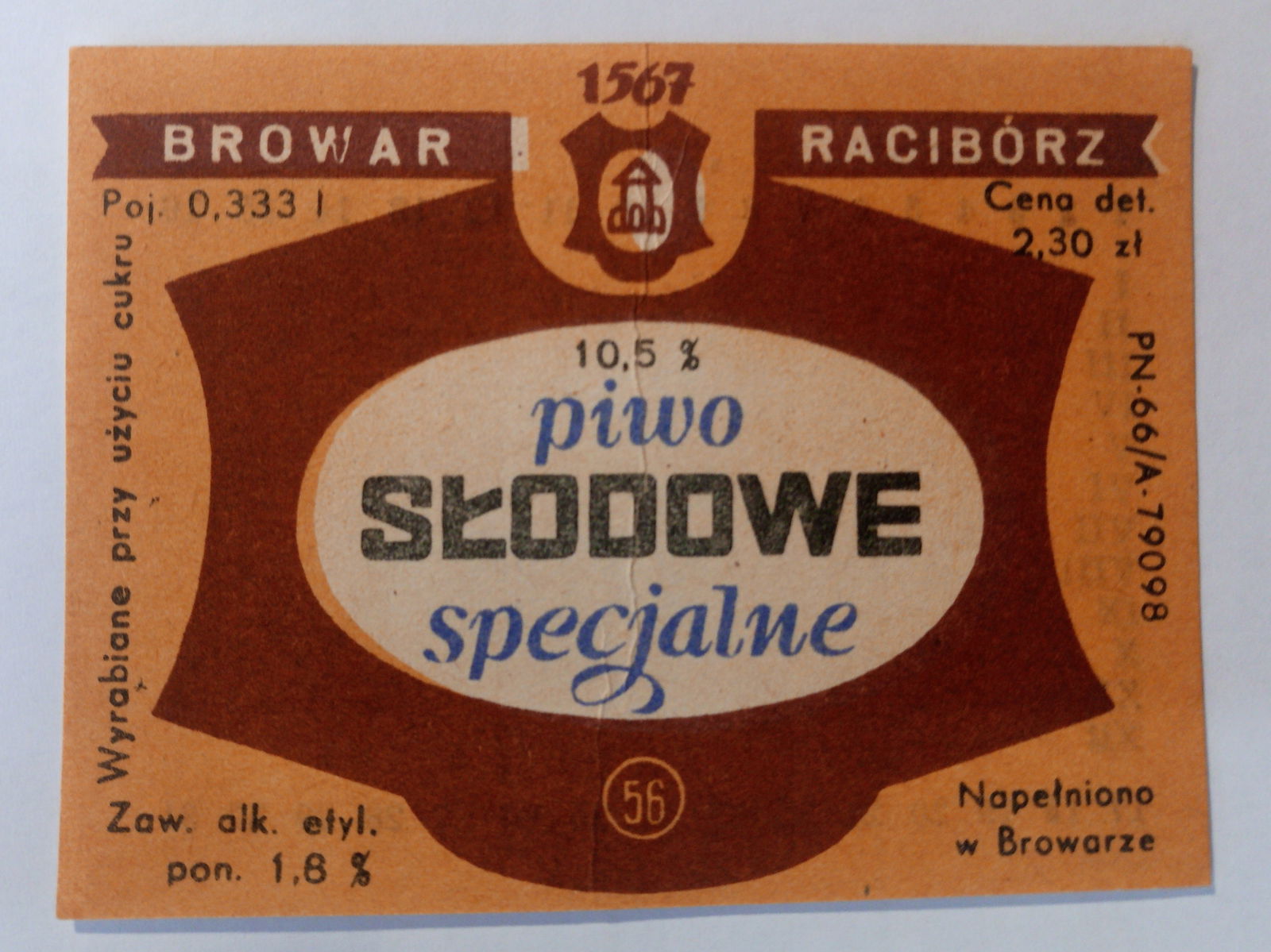 Etykieta Browar Racibórz - Piwo Słodowe Specjalne