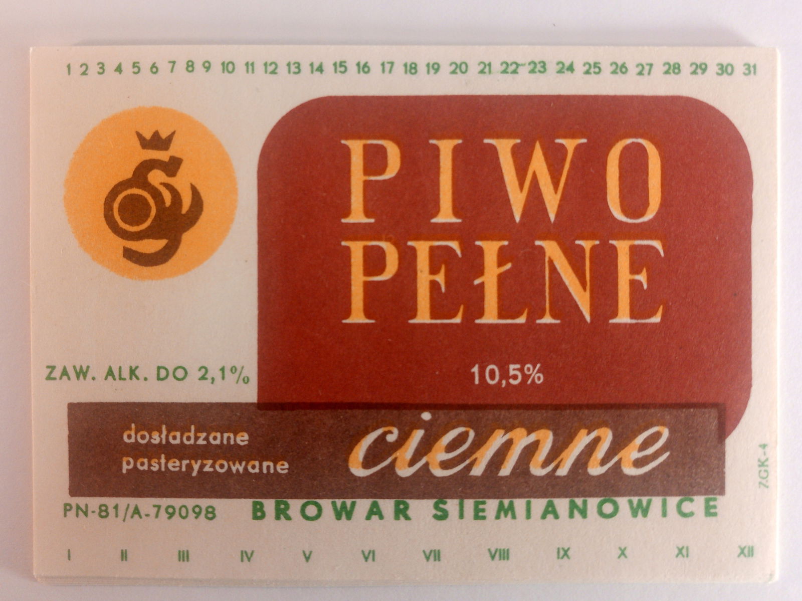 Etykieta Browar Siemianowice Piwo Pełne Ciemne