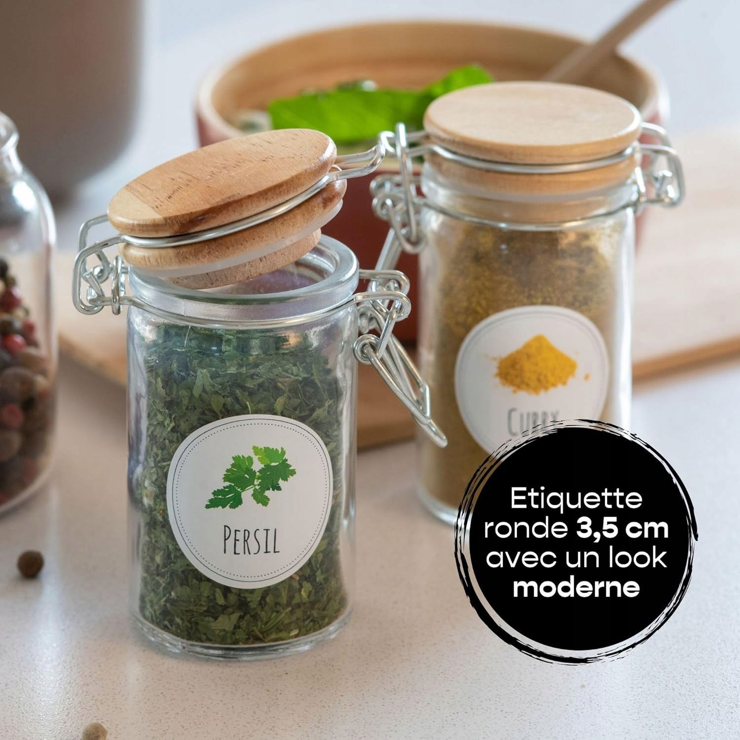 Zestaw Avery Okrągłych Etykiet Na Słoiki Ø 35 mm – 45 Gotowych + 3 Puste Do Opisu | Samoprzylepne Naklejki Na Przyprawy, Zioła, Słoiki