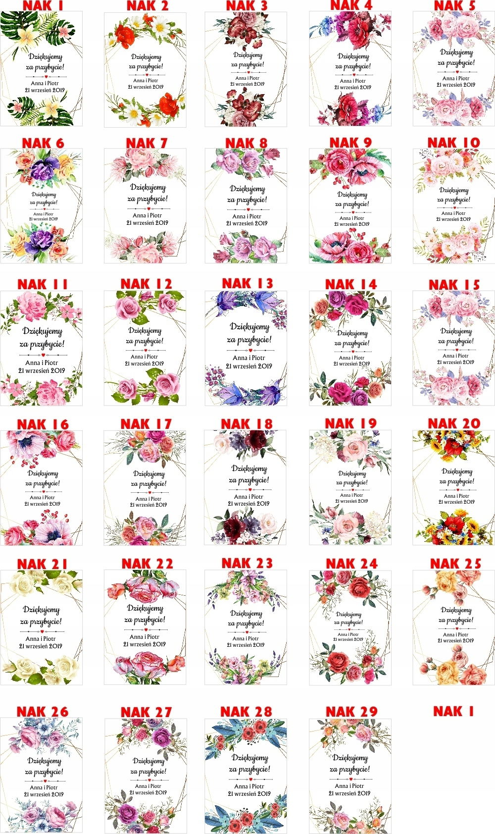 30 wzorów do wyboru (można wybrać tyle wzorów ile zakupionych kompletów)