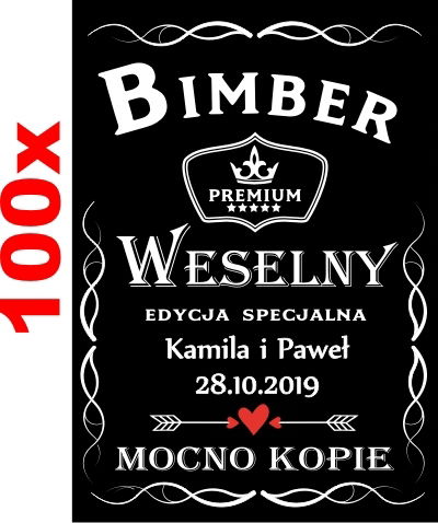 Aukcja obejmuje komplet 100szt nakielek na Bimber Weselny,