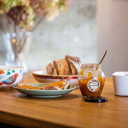 - Elegancki design - prostota naklejki sprawia, że przetwory skryte w słoikach i butelkach prezentują się elegancko i mogąc stanowić śliczny upominek dla znajomych!