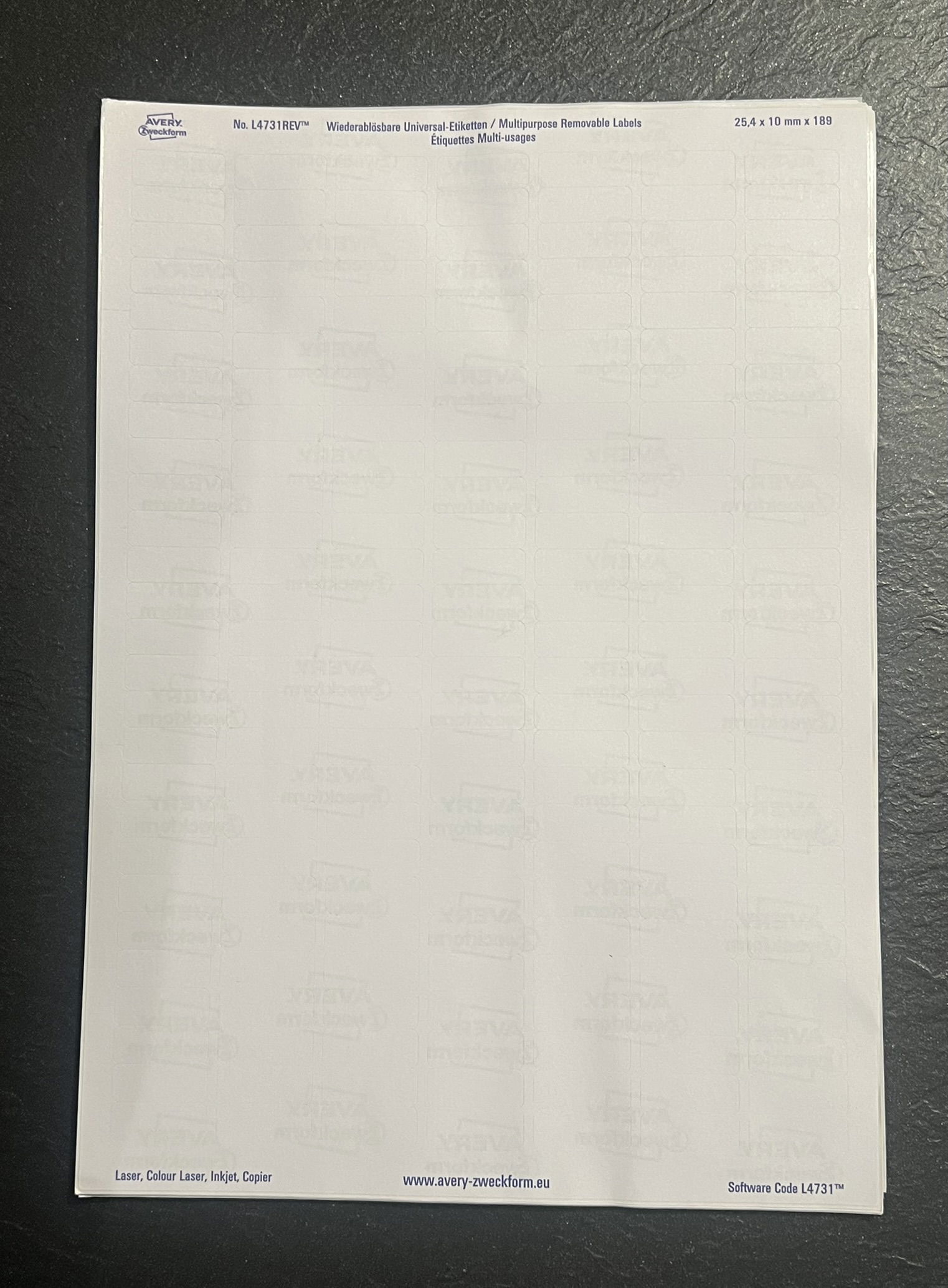 Białe, usuwalne etykiety w formacie 25,4 x 10 mm – z klejem górnym na różnych powierzchniach – dodatkowa zawartość w opakowaniu.
