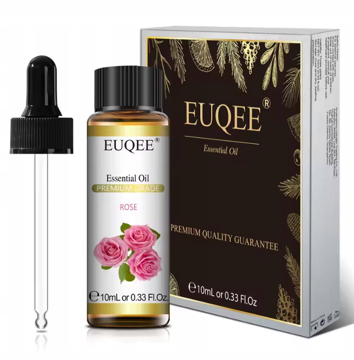 Olejek zapachowy marki EUQEE o pięknym aromacie świeżych róż. Idealny do relaksu, aromaterapii i domowych rytuałów pielęgnacyjnych.