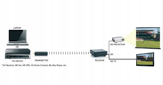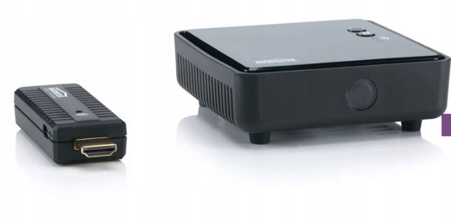 GigaView 811 przesyła sygnał z laptopa (lub innego urządzenia HDMI) bezprzewodowo do odbiornika, który jest podłączony do projektora / projektora.