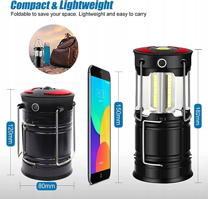 【Łatwa do przenoszenia】: Latarnia kempingowa jest mała, lekka, zajmuje mało miejsca i jest łatwa do przenoszenia. Dzięki niewielkim rozmiarom latarnię kempingową można bez problemu schować w plecaku. Latarnia kempingowa LED pozwala cieszyć się różnymi aktywnościami nocnymi, takimi jak praca, kemping, polowanie, wędkowanie, czytanie itd.