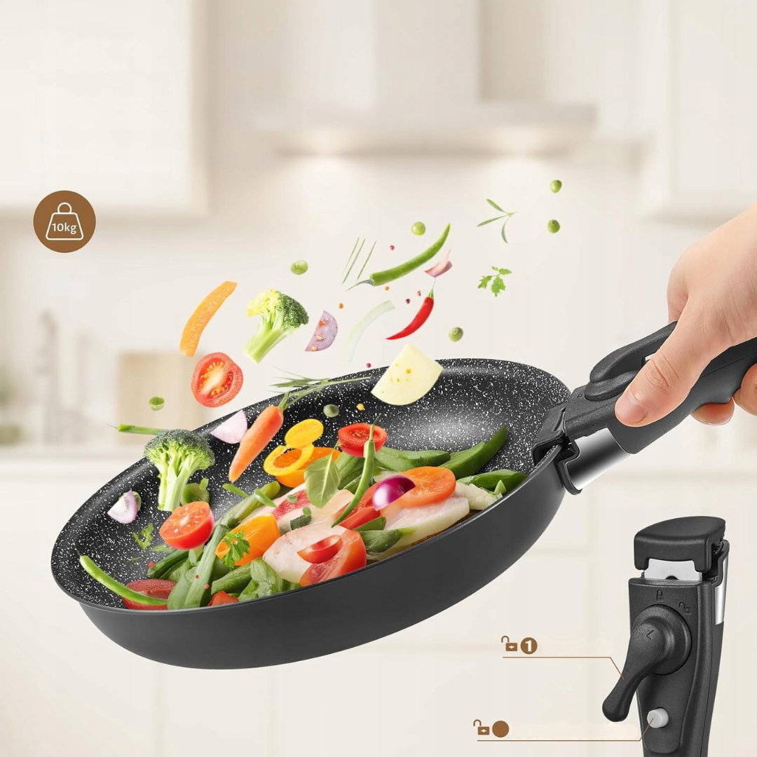 Fadware Zestaw nieprzywierających patelni z odpinanym uchwytem – 4-częściowy zestaw patelni (20, 24, 28 cm) do płyt indukcyjnych i wszystkich rodzajów kuchenek.