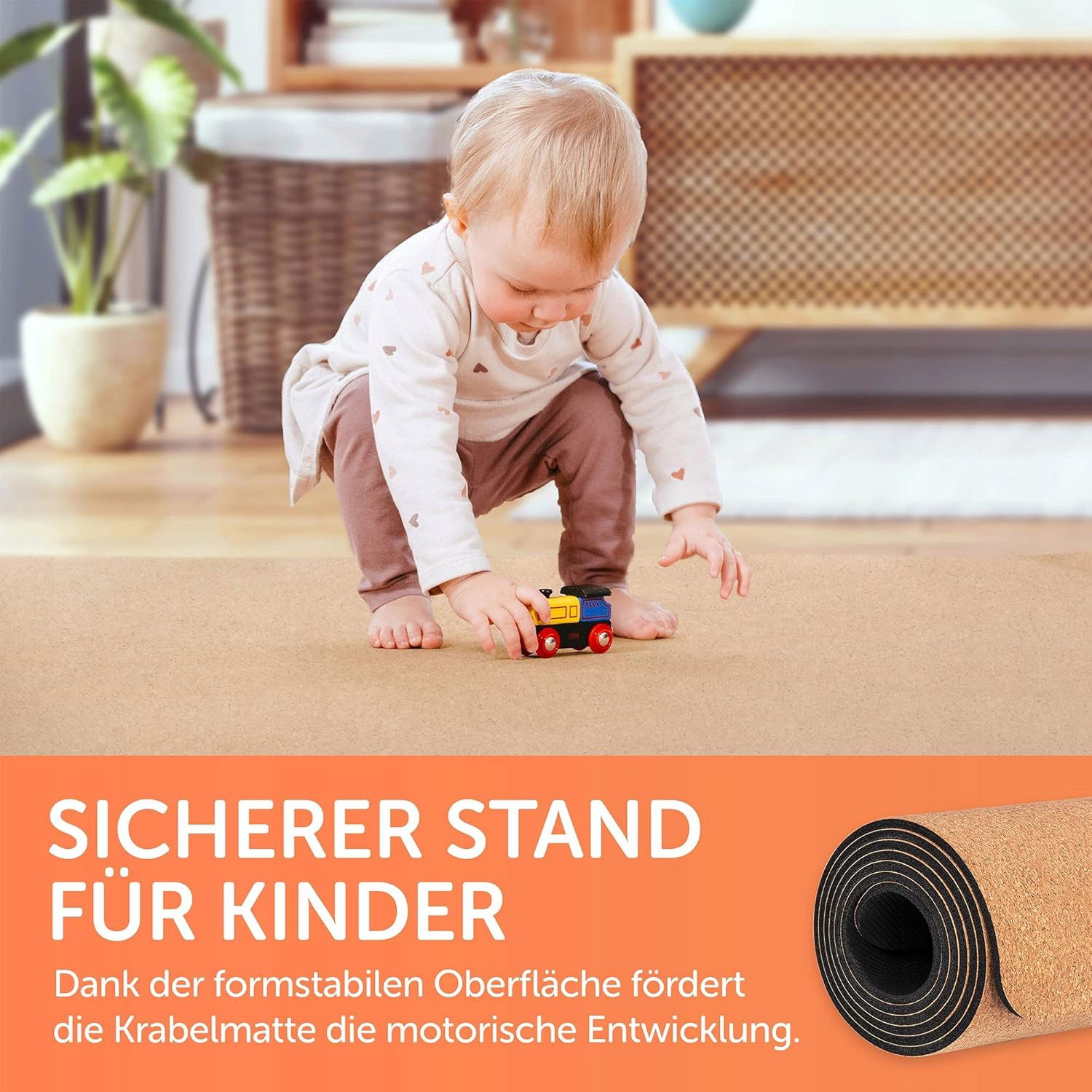 Przyjemnie miękka i delikatna – korkowa mata do raczkowania izoluje dzieci podczas zabawy przed zimnem, lepiej niż zabawa na płytkach lub raczkowanie! Izoluje znacznie lepiej niż koc do raczkowania lub dywan do raczkowania wykonany z materiału i chroni stawy i kolana.