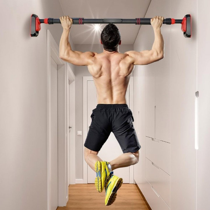 【Łatwa instalacja】Drążek do podciągania można przedłużyć do 145 cm, upewnij się, że drzwi lub ściana są wystarczająco mocne, aby można je było zainstalować. Nadaje się do biur, korytarzy, drzwi z litego drewna.