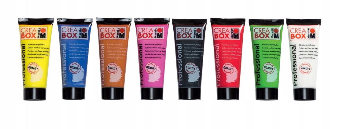 Zestaw farb akrylowych Crea Box Professional to idealny wybór dla artystów, hobbystów i osób początkujących. Matowe farby na bazie wody doskonale sprawdzają się w różnych technikach malarskich, dając intensywne kolory i trwałe efekty. Mogą być nakładane pędzlem, wałkiem malarskim lub gąbką na płótno, drewno, tekstylia i wiele innych powierzchni. Dzięki szybkiemu schnięciu i odporności na światło oraz wodę, stworzysz trwałe i efektowne prace.