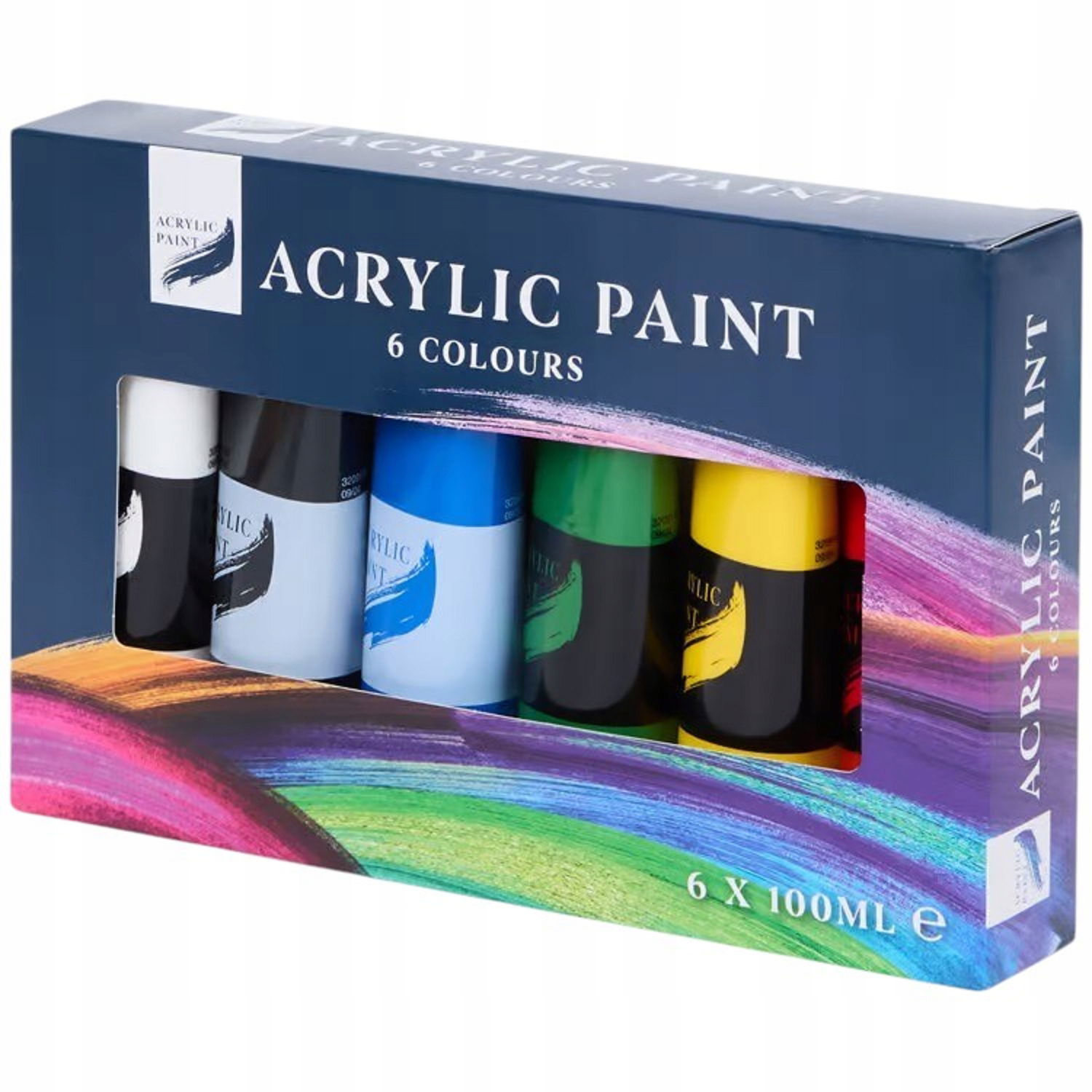 FARBY AKRYLOWE ZESTAW RÓŻNE KOLORY 6 X 100 ML PŁÓTNO PAPIER DREWNO