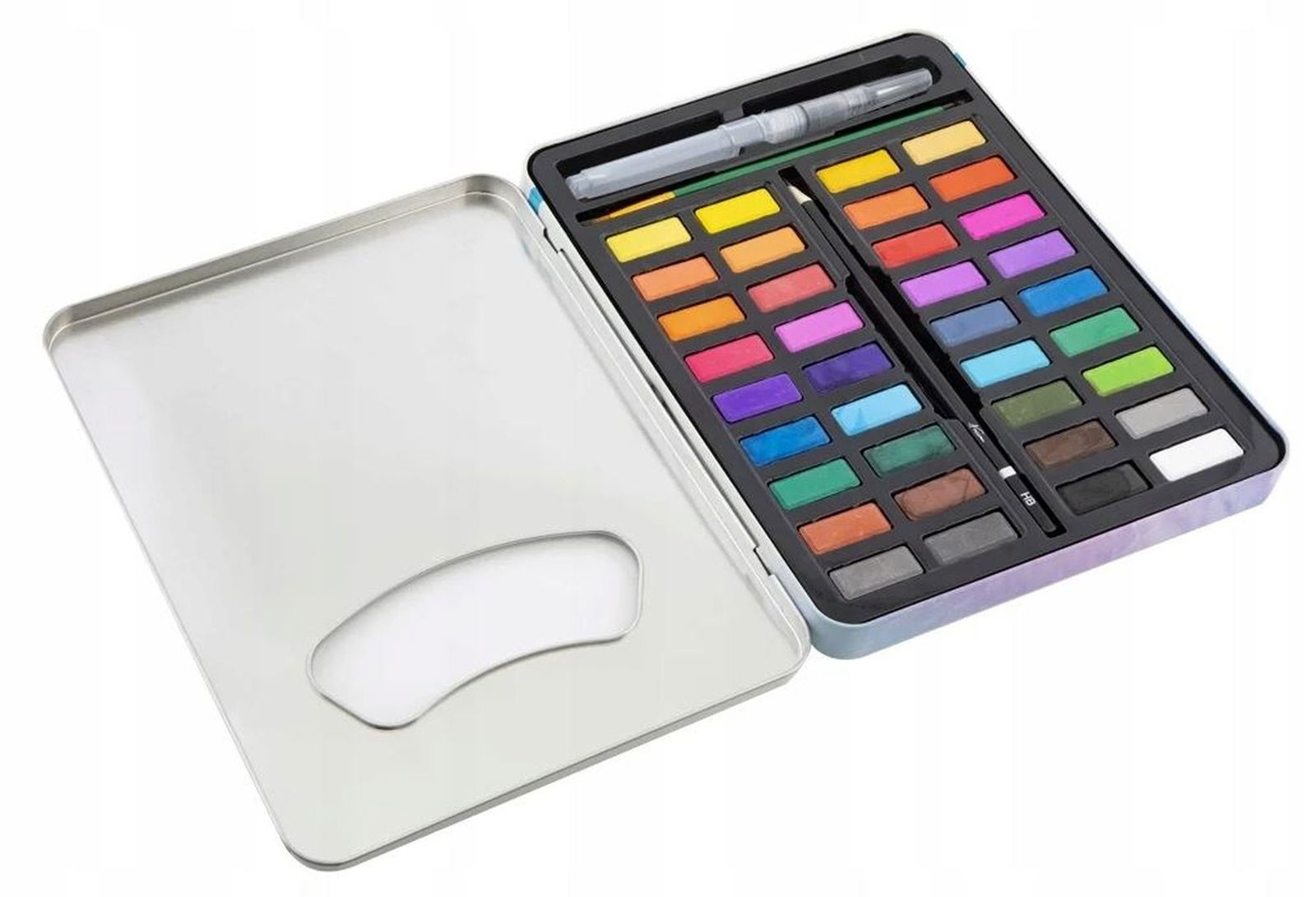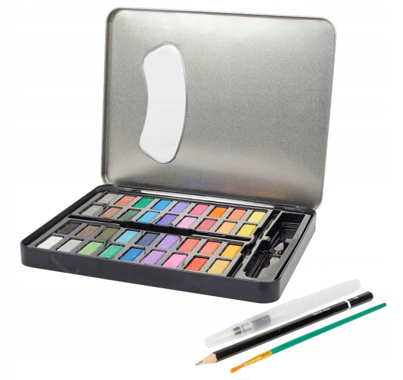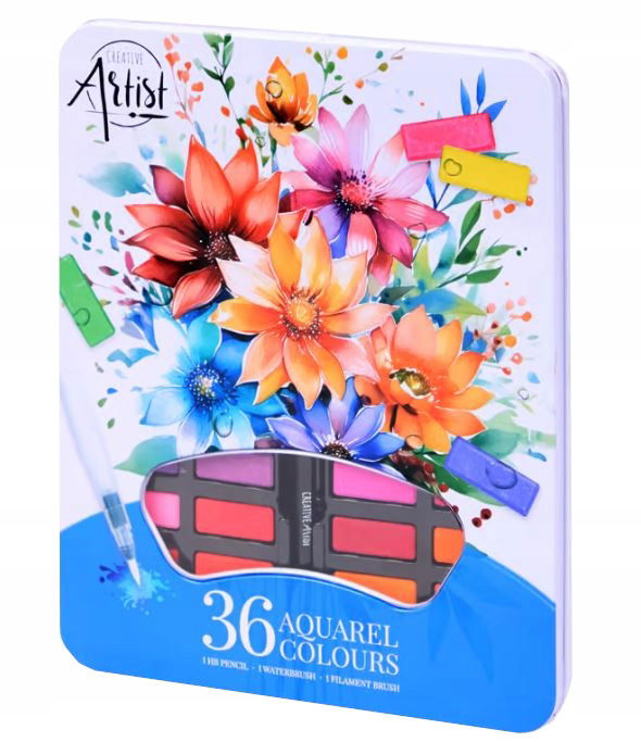 Farby akwarelowe Creative Artist 2 pędzle ołówek 36 szt metalowy organizer