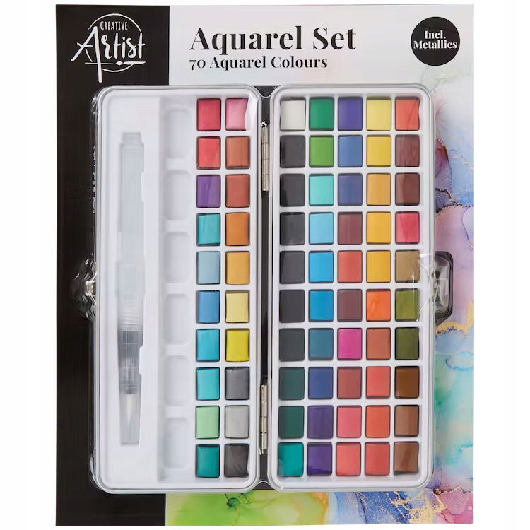 Farby akwarelowe Creative Artist wielokolorowy zestaw 70 kostek + pędzelek