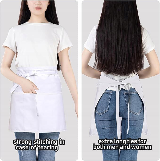 Fartuch kelnerski z 3 kieszeniami, wodoodporny ,półfartuch dla mężczyzn i kobiet, do gotowania, sprzątania, malowania, ogrodnictwa, bistro, restauracji (biały) 6 szt
