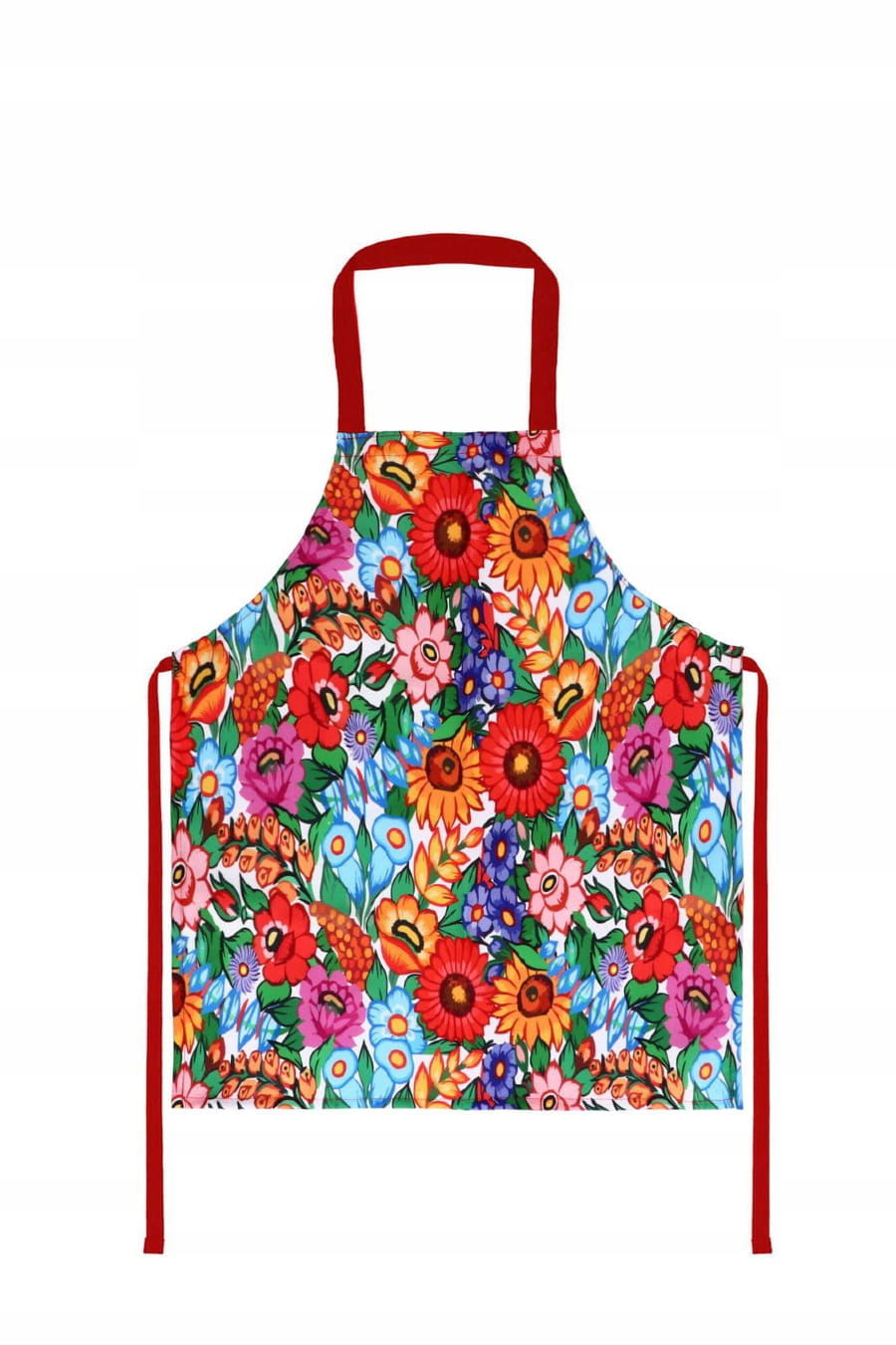 Fartuch kuchenny z motywem kwiatów z Zalipia to nie tylko praktyczne narzędzie kuchenne, ale także piękny element dekoracyjny, który przynosi do Twojej kuchni tradycję i kolor. Jego intensywny, folkowy wzór sprawia, że prace kuchenne stają się jeszcze bardziej przyjemne. To idealny wybór dla miłośników kultury i tradycji ludowej Polski oraz piękna okazja, by wprowadzić kawałek Zalipia do swojego domu.