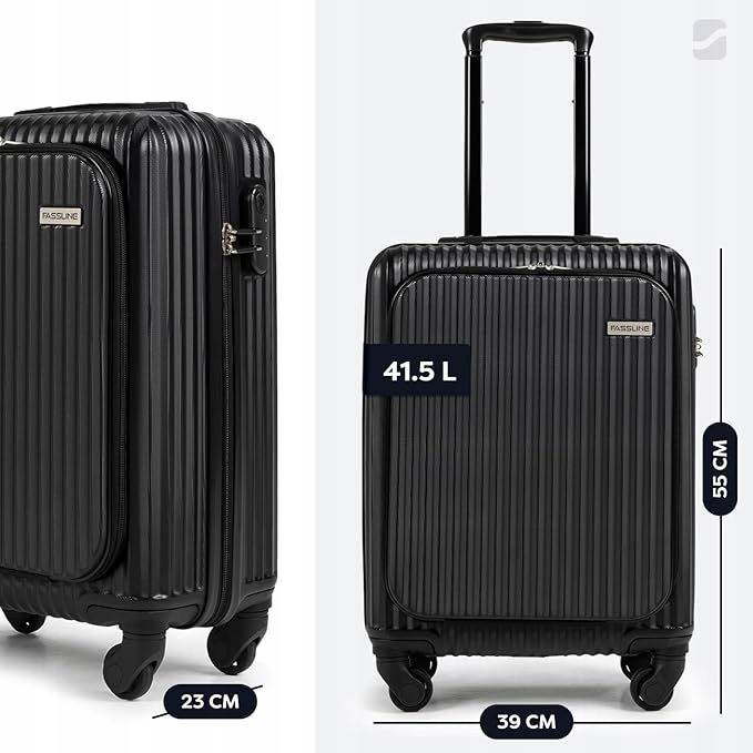 - Walizka kabinowa z kieszenią na laptopa – bagaż podręczny z kieszenią na laptopa: 55 x 39 x 23 cm; pojemność: 41,5 l; waga: 3,0 kg. Lekka wytrzymała twarda walizka z tworzywa sztucznego ABS, która jest odporna na zarysowania i różne uszkodzenia.