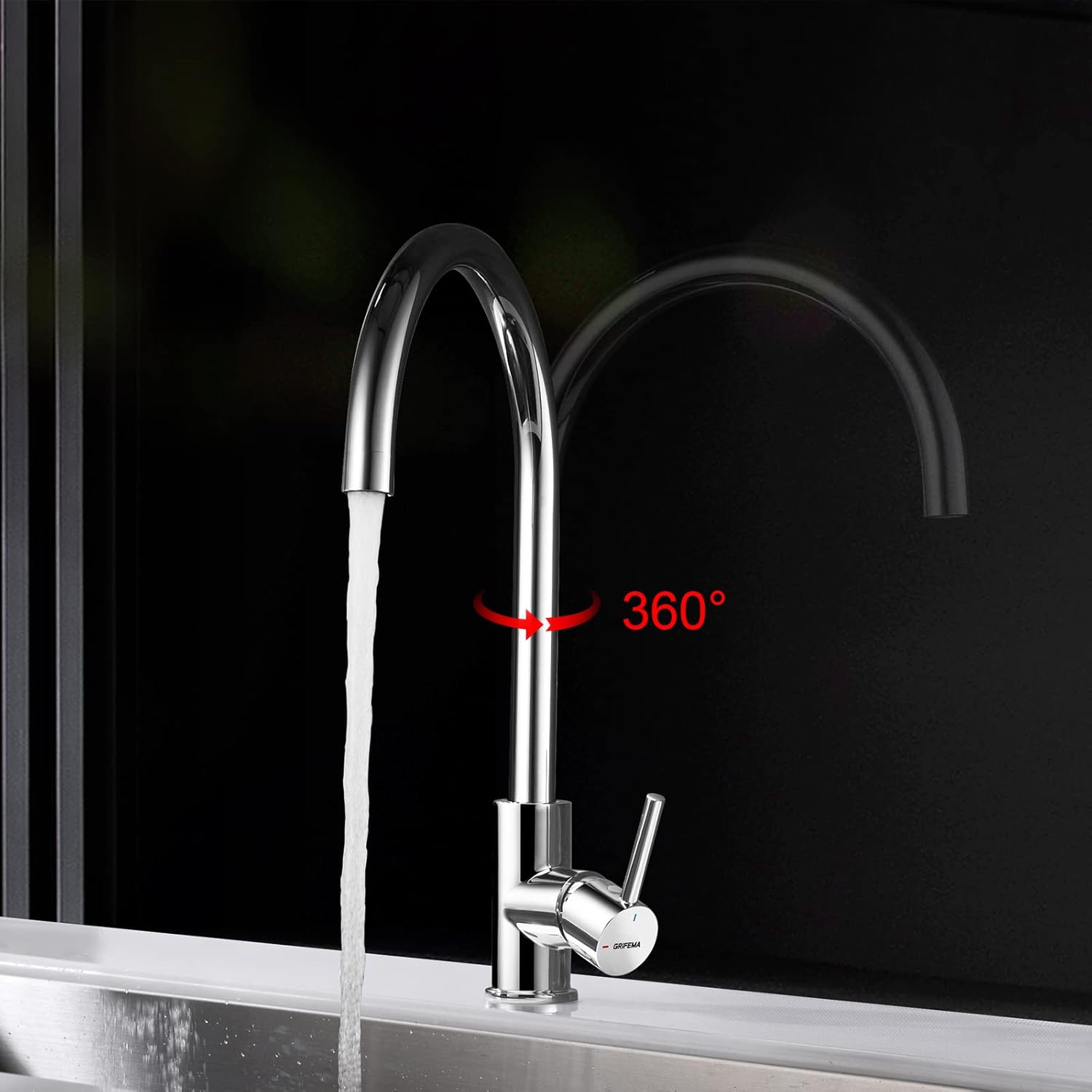 Kran kuchenny o umiarkowanej wysokości zapewnia pełen komfort w kuchni. Dzięki miękkiemu zakresowi obrotu 360 stopni, obracanie i zmiana położenia stają się dziecinnie proste.