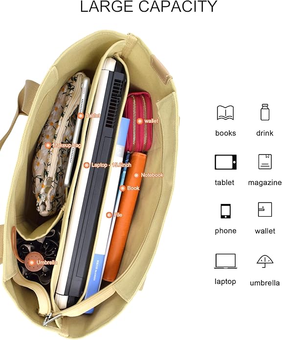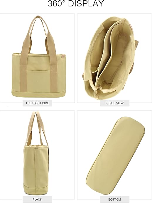 Wielofunkcyjna torebka z płótna: urocza torba posiada 1 komorę główną z zamkiem błyskawicznym i 5 kieszeni wewnętrznych, które mogą utrzymać Twoje rzeczy uporządkowane i łatwiej je znaleźć. Kieszeń wewnętrzna torby może pomieścić iPada, parasol, portfel, klucze, telefon komórkowy i inne rzeczy.