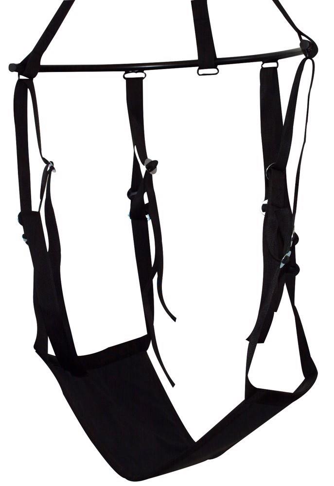 Z dużą powierzchnią styku! Czarna huśtawka miłosna z dużą powierzchnią styku i paskami na dłonie i stopy wykonanymi z materiału odpornego na rozdarcia, o regulowanej długości. Pozwala na różne pozycje seksualne, co w przeciwnym razie nie byłoby możliwe. Bez akcesoriów montażowych. Możliwość obciążenia do 120 kg. Mata 88 x 60 cm duża, 100% poliester.