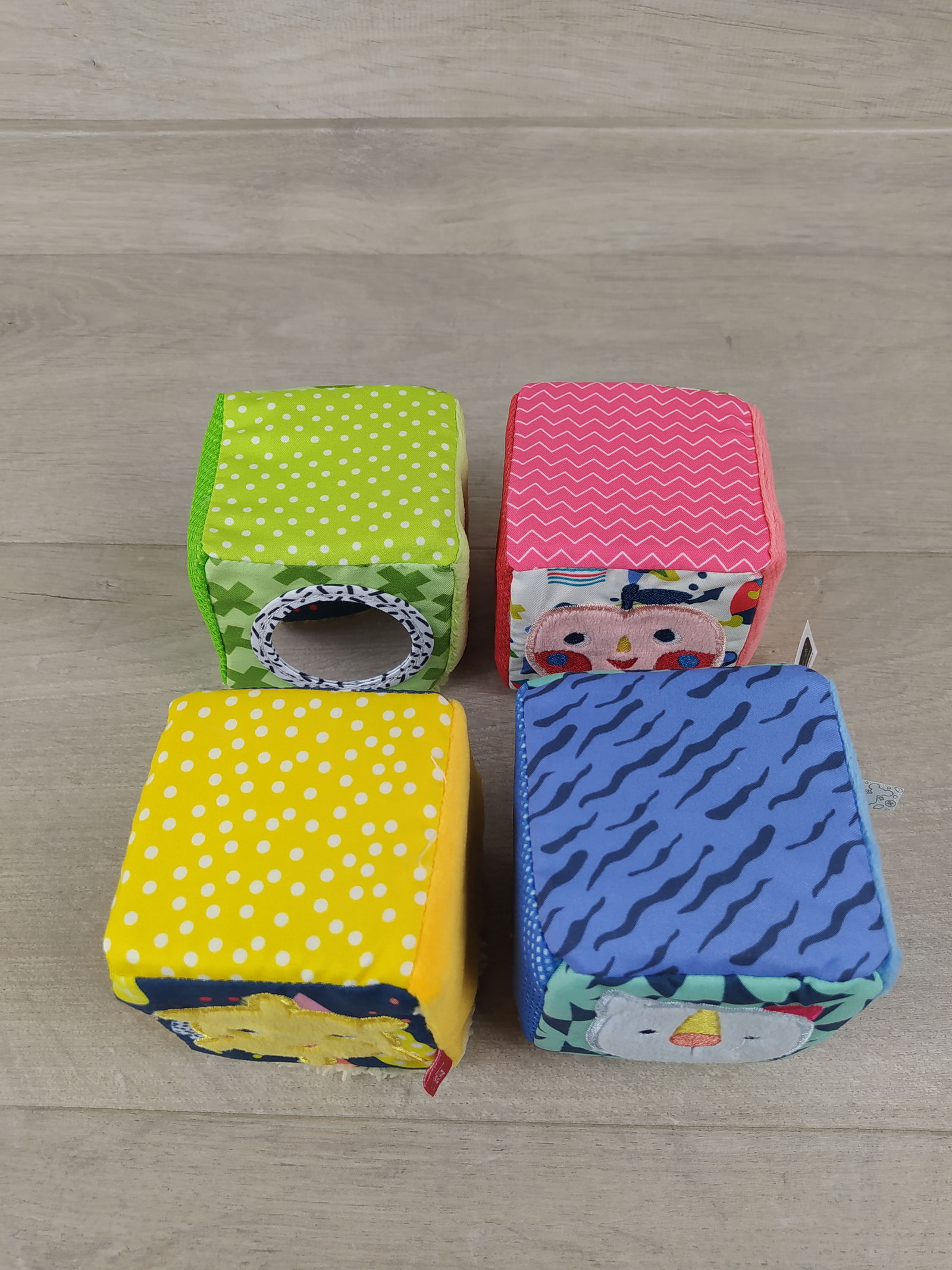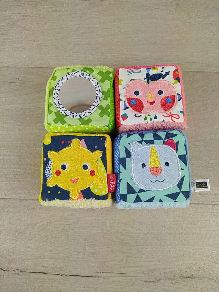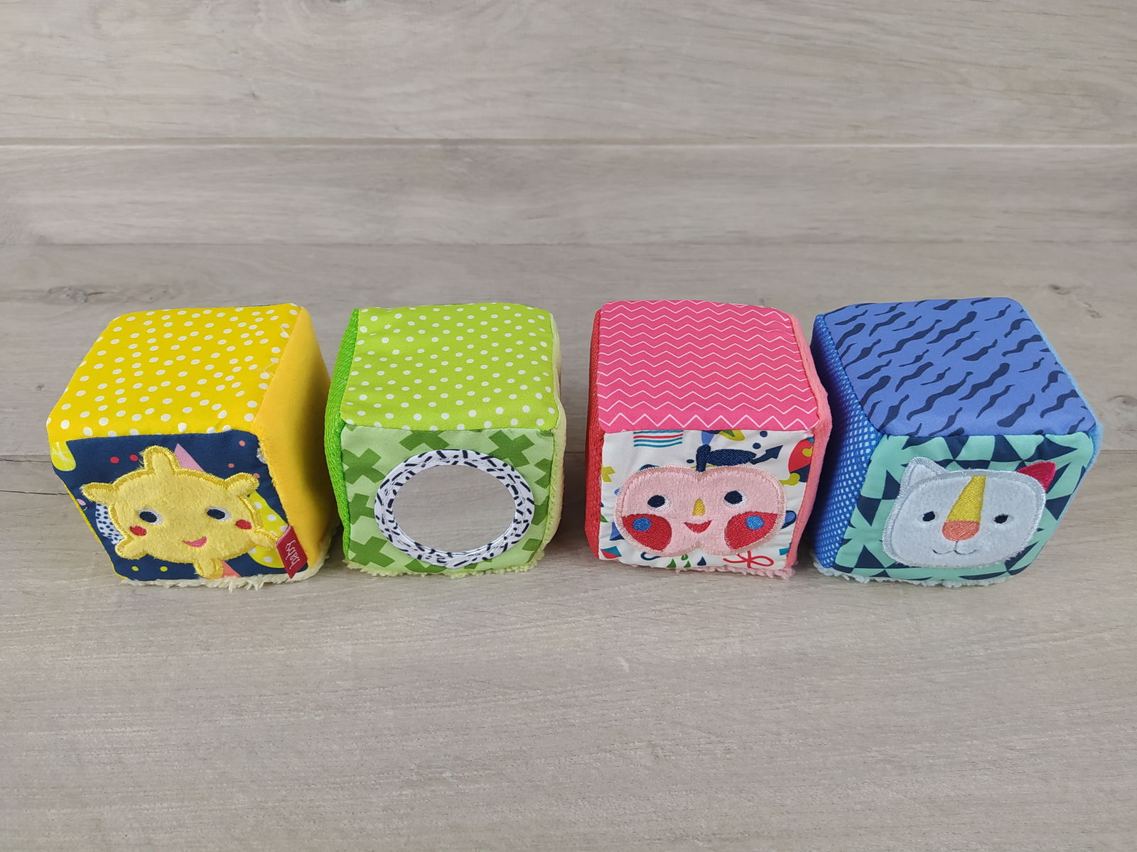 - NIEOGRANICZONE ODKRYWANIE – materiałowe kostki zachęcają do odkrywania, układania, zabawy i wydawania dźwięków, a także wspierają naturalną ciekawość niemowląt i małych dzieci, zachęcając je do zabawnego odkrywania świata.