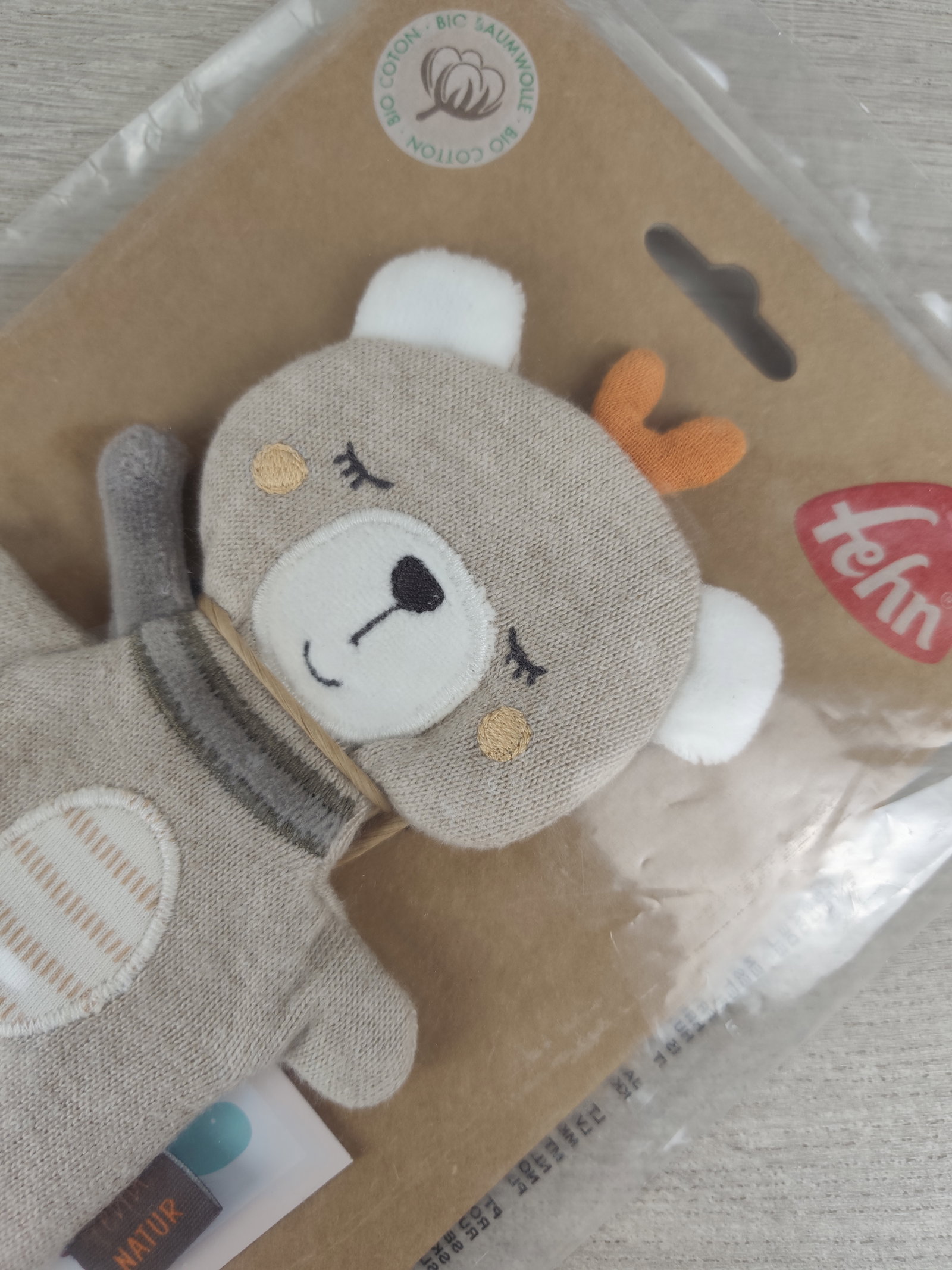 🤎 Fehn Teddy fehnNATUR to miękki, lekki i bezpieczny szeleszczący miś wykonany z bio‑bawełny (kbA). Idealny do chwytania, ugniatania i odkrywania nowych dźwięków już od pierwszych dni życia.