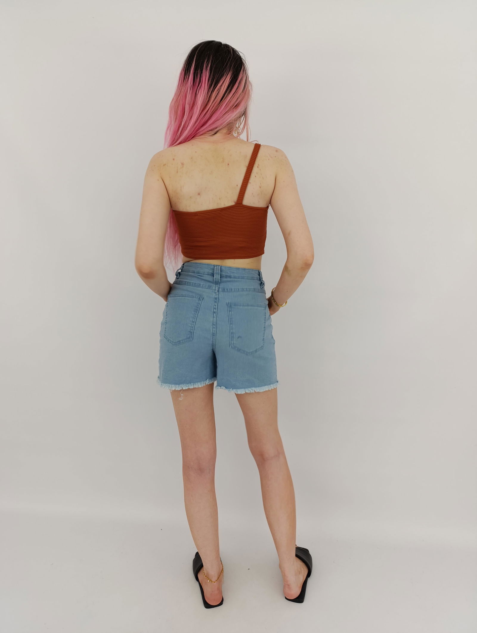 FEMME LUXE tłoczona BLUZKA CROP TOP na jedno ramię MODNA _ 34