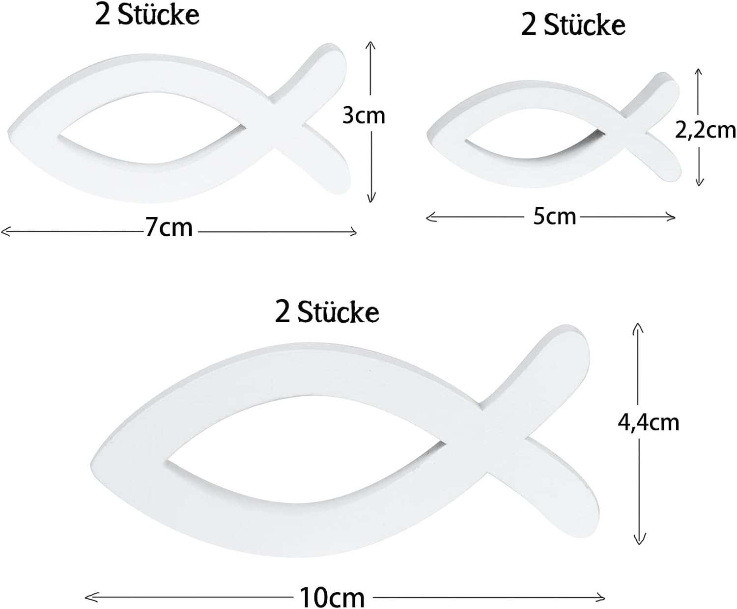 FEPITO Dekoracyjne rybki drewniane 6 szt. białe do chrztu komunii B117