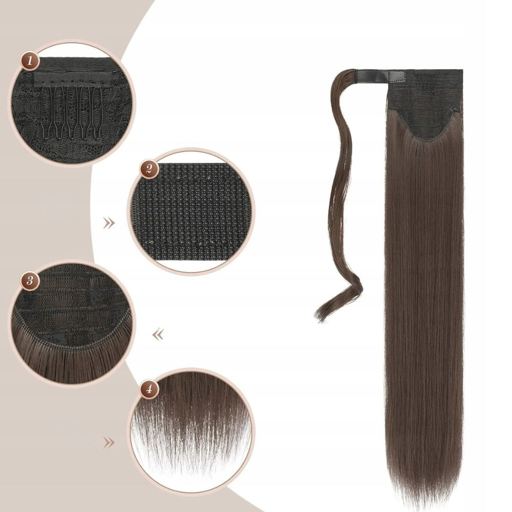 FESHFEN Clip-In Przedłużenie Kucyka 60 cm Średni Kasztanowy Brąz