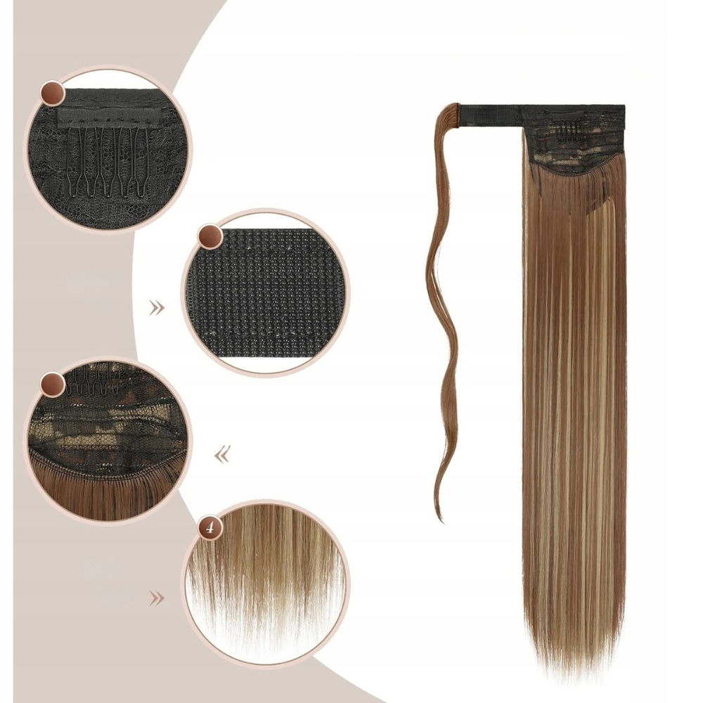 FESHFEN Doczepiany Kucyk 60 cm - Proste Włosy Syntetyczne 125 g