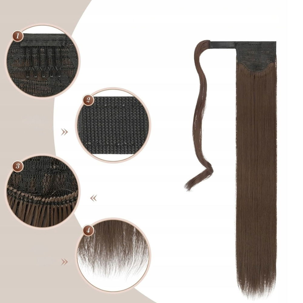 Dodaj swojej fryzurze naturalnej długości i objętości w zaledwie kilka sekund! Przedłużany kucyk FESHFEN w odcieniu średniego kasztanowego brązu to doczepiana ozdoba typu wrap-around, która łączy w sobie efektowny wygląd, komfort noszenia i błyskawiczny montaż. Idealna na co dzień i na specjalne okazje – zawsze, gdy chcesz wyglądać pięknie i naturalnie.