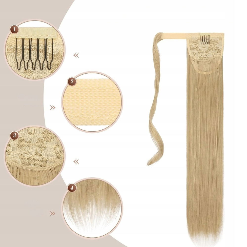 Dodaj długości, objętości i luksusowego blasku swojej fryzurze dzięki przedłużanym kucykom FESHFEN! Ten owijany, syntetyczny kucyk o długości aż 28 cali to idealna propozycja dla kobiet, które pragną szybkiej i efektownej zmiany stylu – z myślą o codziennych wyjściach i wyjątkowych okazjach. Dostępny w odcieniu jasnozłotego i rozjaśnionego blondu, świetnie komponuje się z naturalnymi włosami.