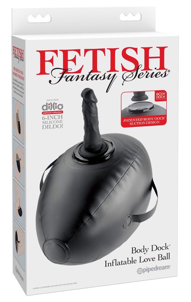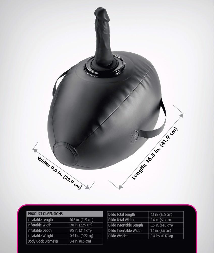 Love Ball: attach the toy and take off! The inflatable, oval-shaped sex cushion Body Dock Inflatable Love Ball from Fetish Fantasy Series has a patented Body Dock toy mount for the included Dillio Platinum Dildo that has a suction cup. Any other toy with a suction cup (e.g. vibrator/ masturbator) can also be easily and securely attached to the docking plate. The Love Ball can be gripped securely, thanks to its sturdy side handles – perfect for hot rides or if it is being guided with hands. Its wonderful size provides comfortable support during pleasurable bouncing.