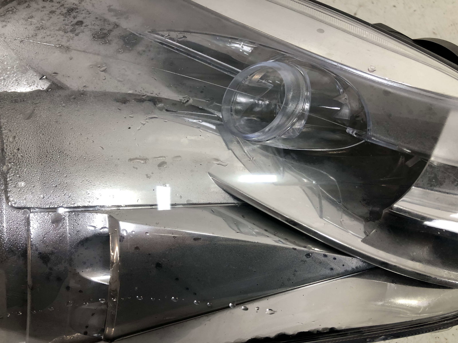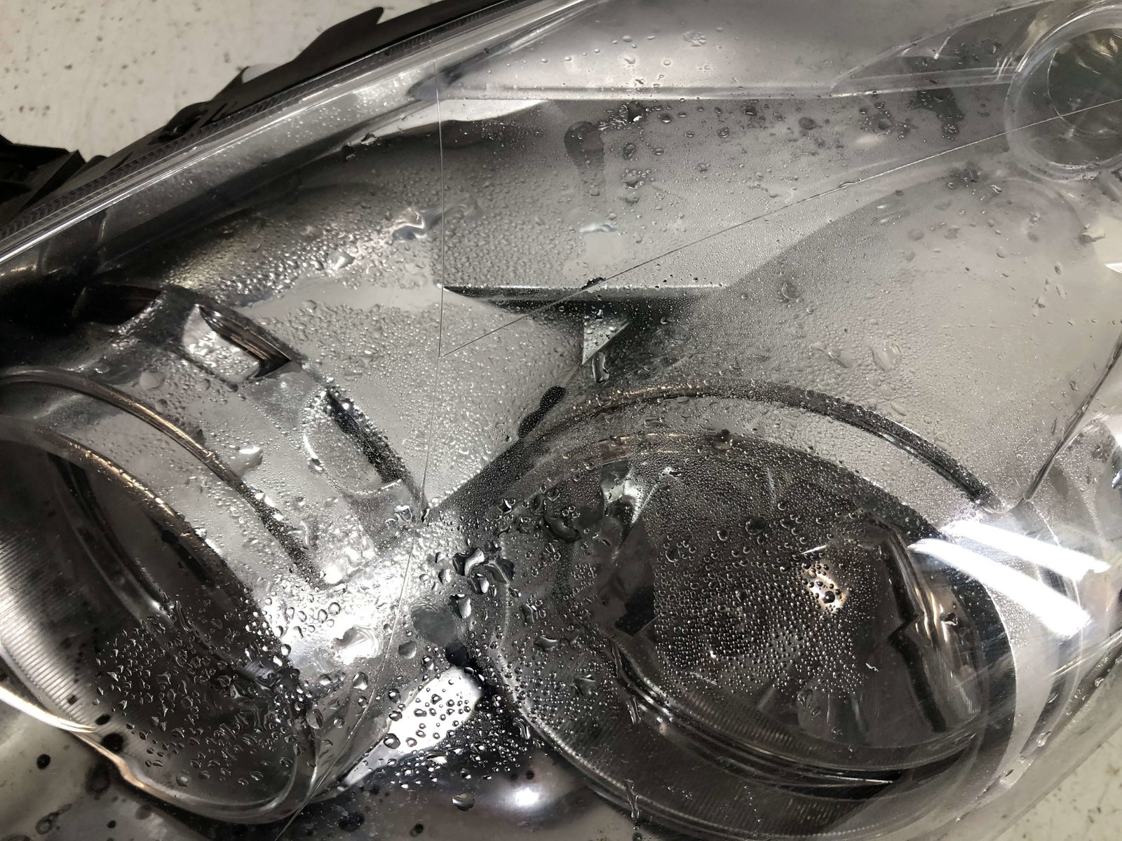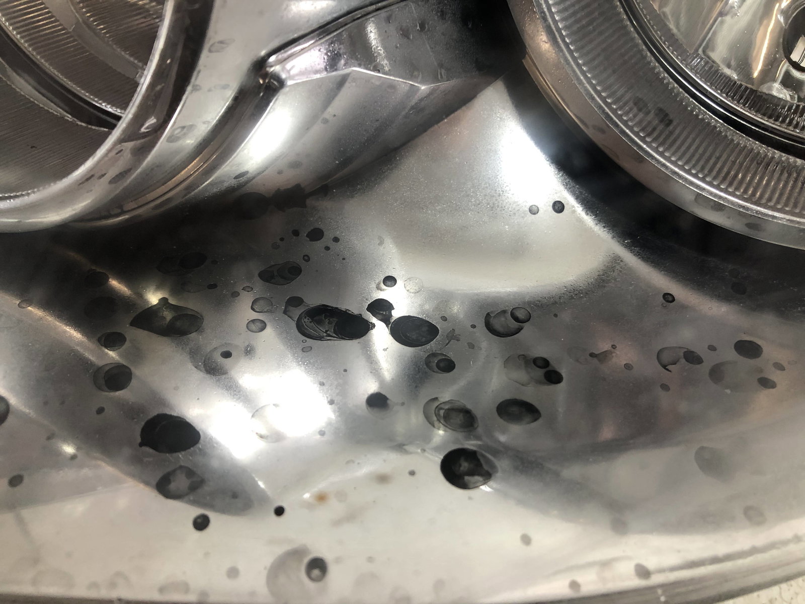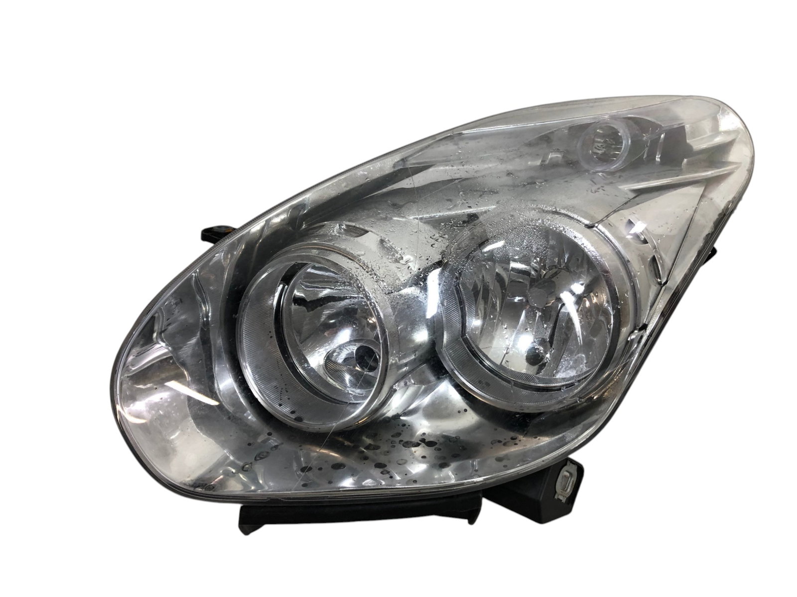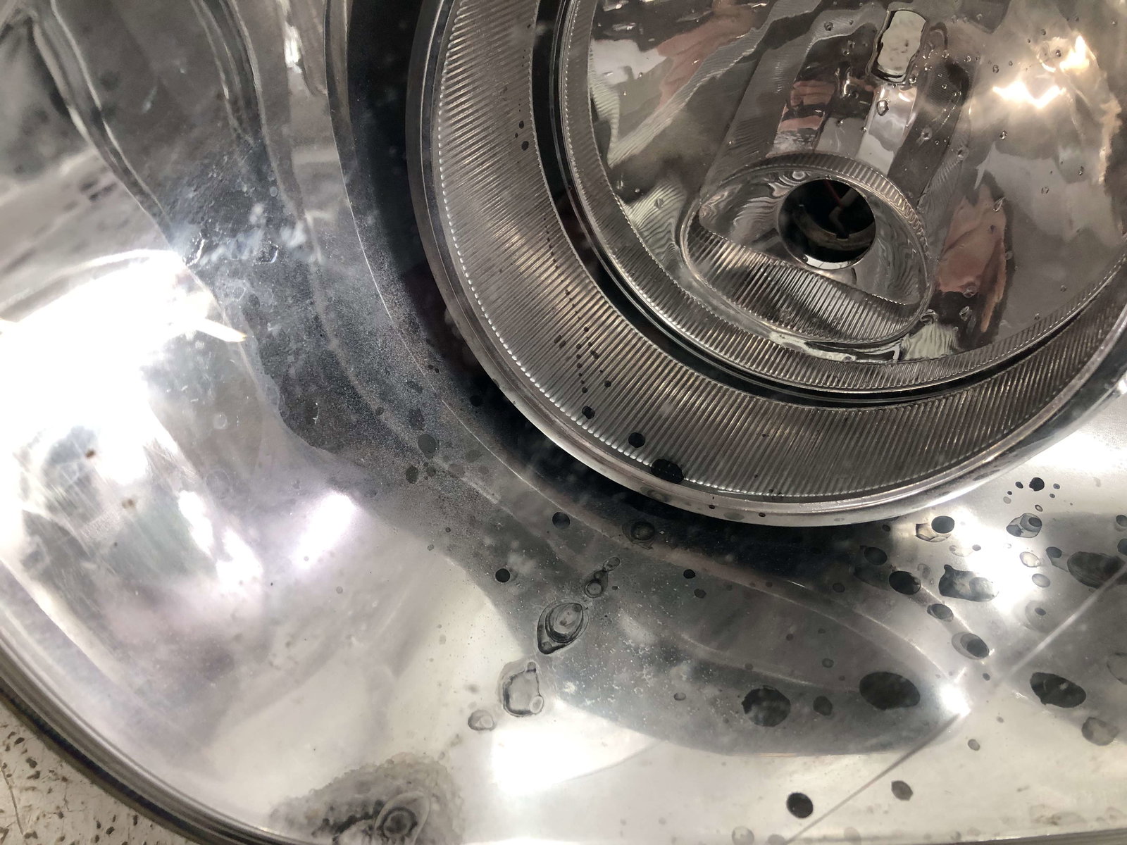Stan: Uszkodzony - reflektor nieszczelny, plamy na odbłyśniku, skropiny wody wewnątrz, brak zaślepek