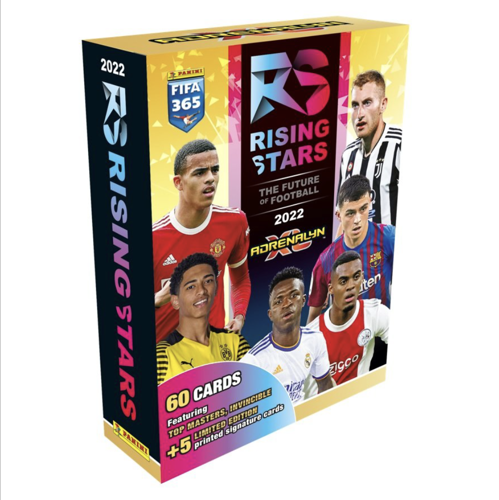 RISING STARS to wydana w niewielkim nakładzie kolekcja kart przedstawiająca największe młode talenty w piłce nożnej z drużyn przedstawionych w kolekcji Panini Fifa 365 Adrenalyn XL 2022. Prawdziwa gratka dla kolekcjonerów! Tekturowe, eleganckie pudełeczko zawiera 60 kart (w tym 10 kart specjalnych) oraz 5 kart z limitowanej edycji).
