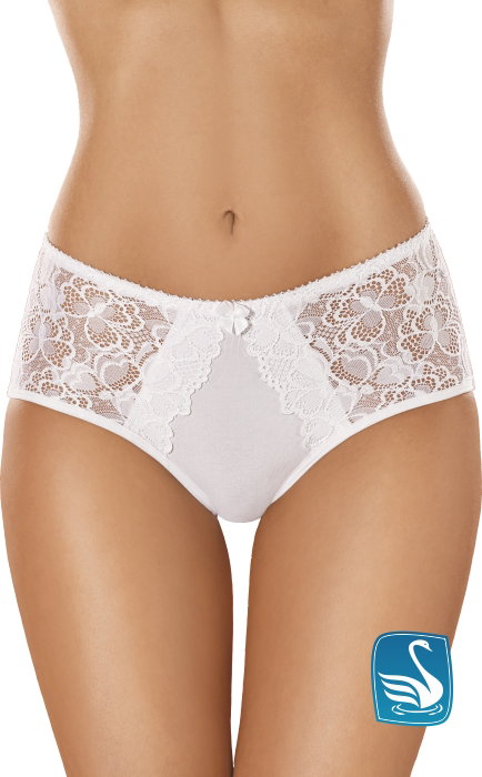 Figi pełne, bawełniane z koronkowymi wstawkami.