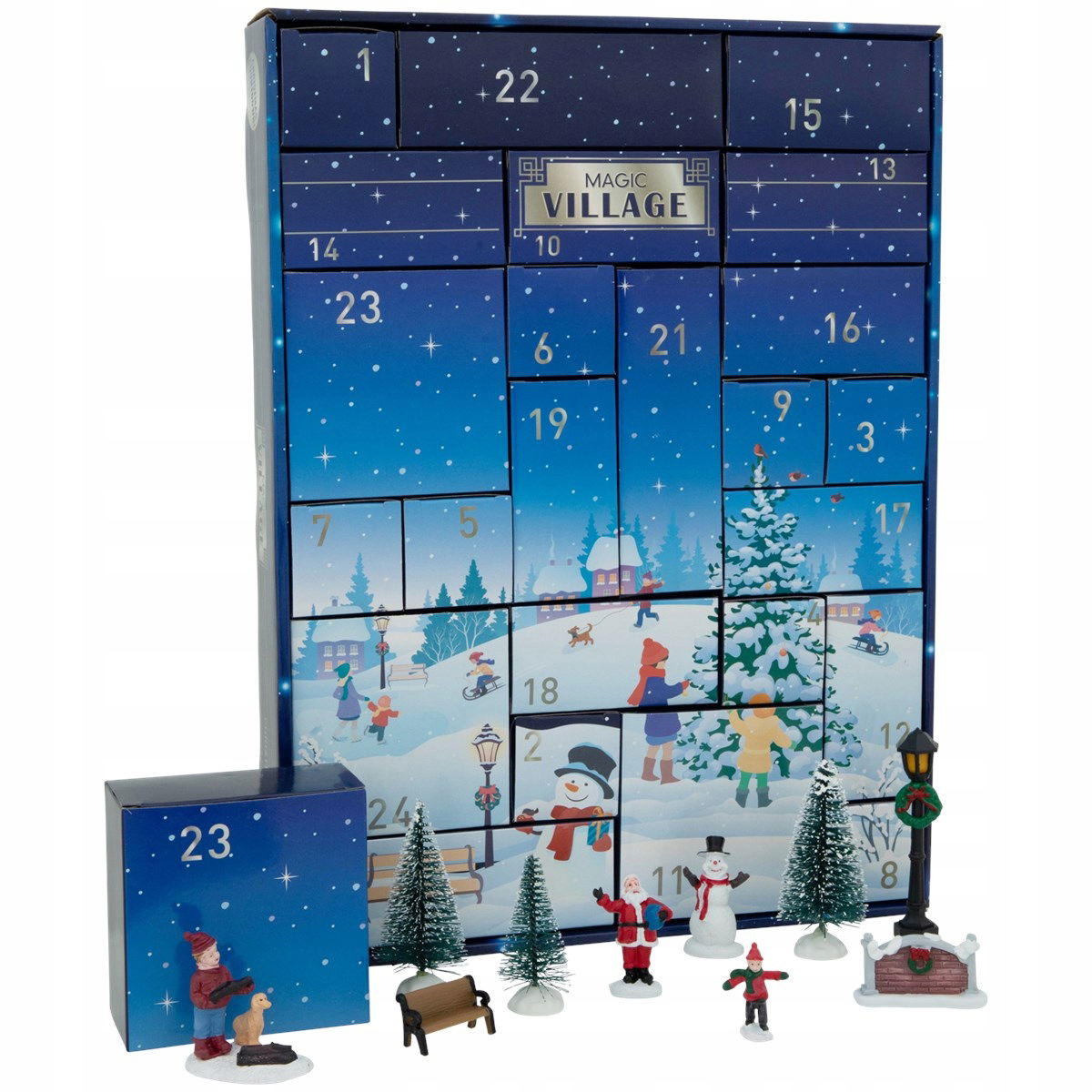 Odliczanie dni do Świąt Bożego Narodzenia jeszcze nigdy nie było tak uroczyste. Kalendarz adwentowy Magic Village wprowadzi Cię w świąteczny nastrój. Każdego dnia uzupełniasz swoją bożonarodzeniową wioskę, otwierając przegródkę i zapewniając miejsce nowemu dodatkowi. W ten sposób przez cały miesiąc możesz zbierać różne fajne przedmioty do swojej świątecznej wioski.